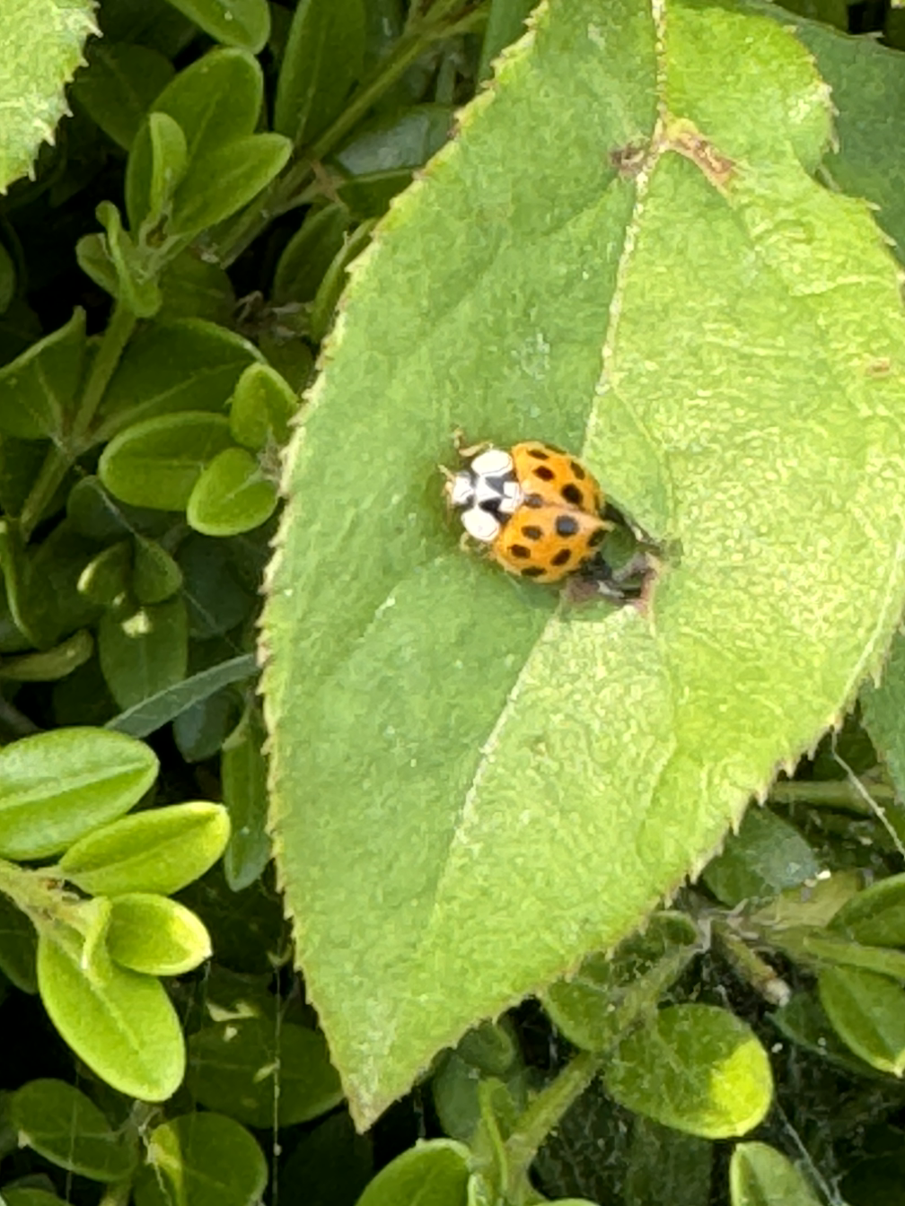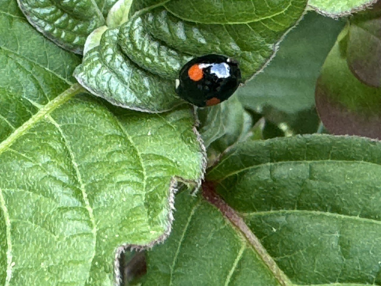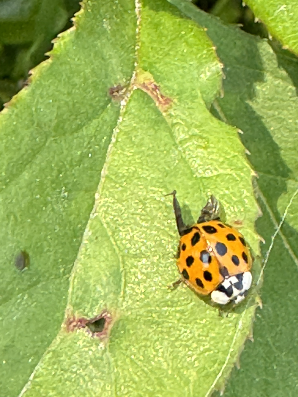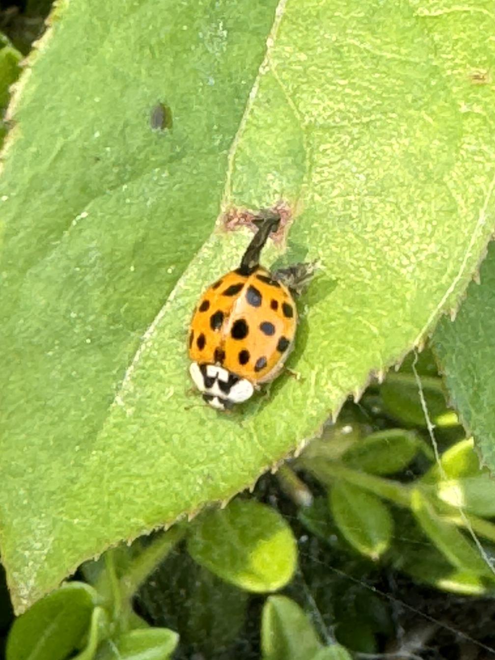요새 칠성 무당벌레보다 이십점박이 무당벌레가 많아졌어요. 칠성 무당벌레는 진딧물을 잡아먹는 육식입니다. 반개로 이십점박이 무당벌레는 초식입니다. 그래도 가끔 남의 알을 먹기도 하면서 동족포식을 합니다.