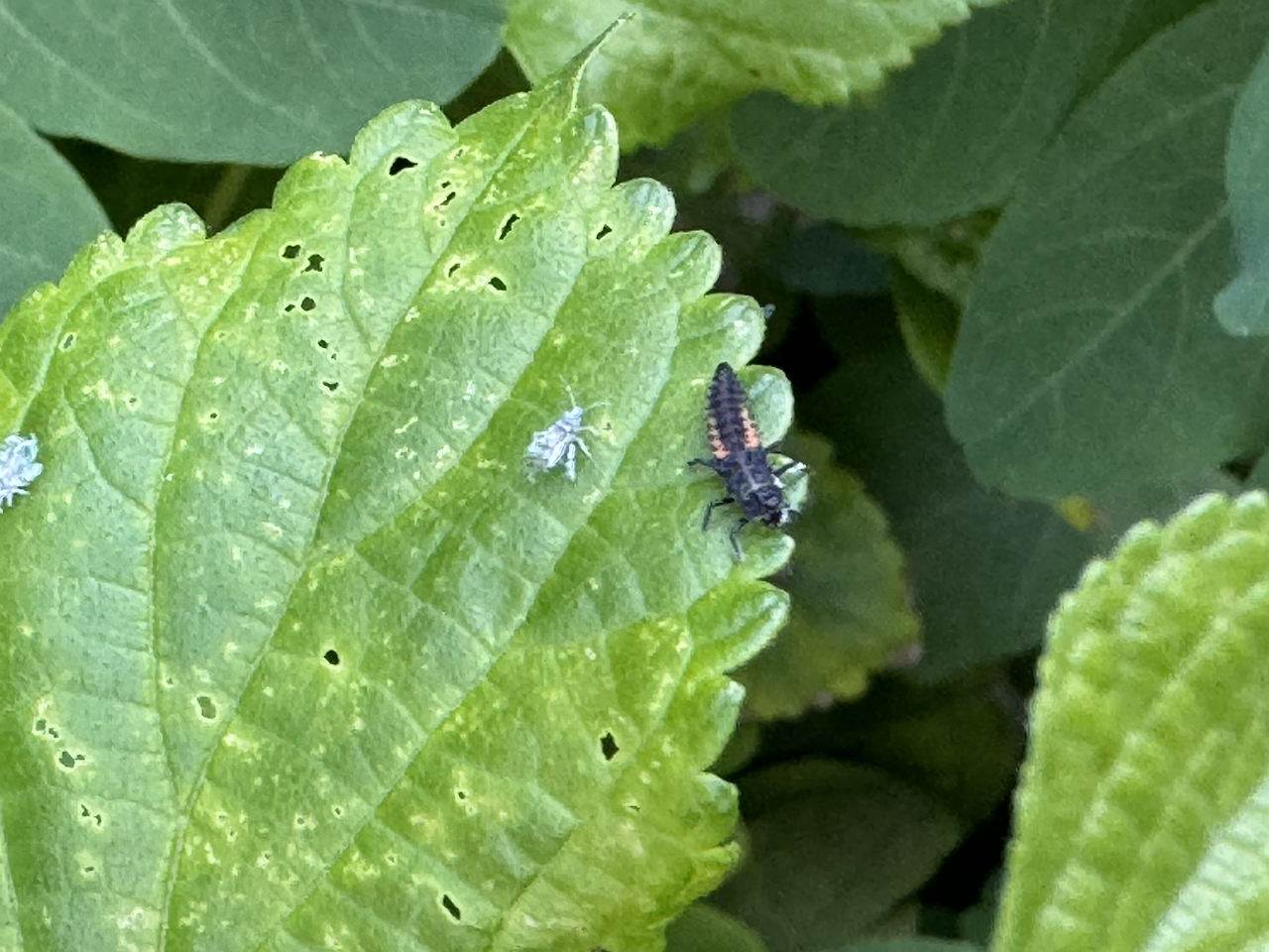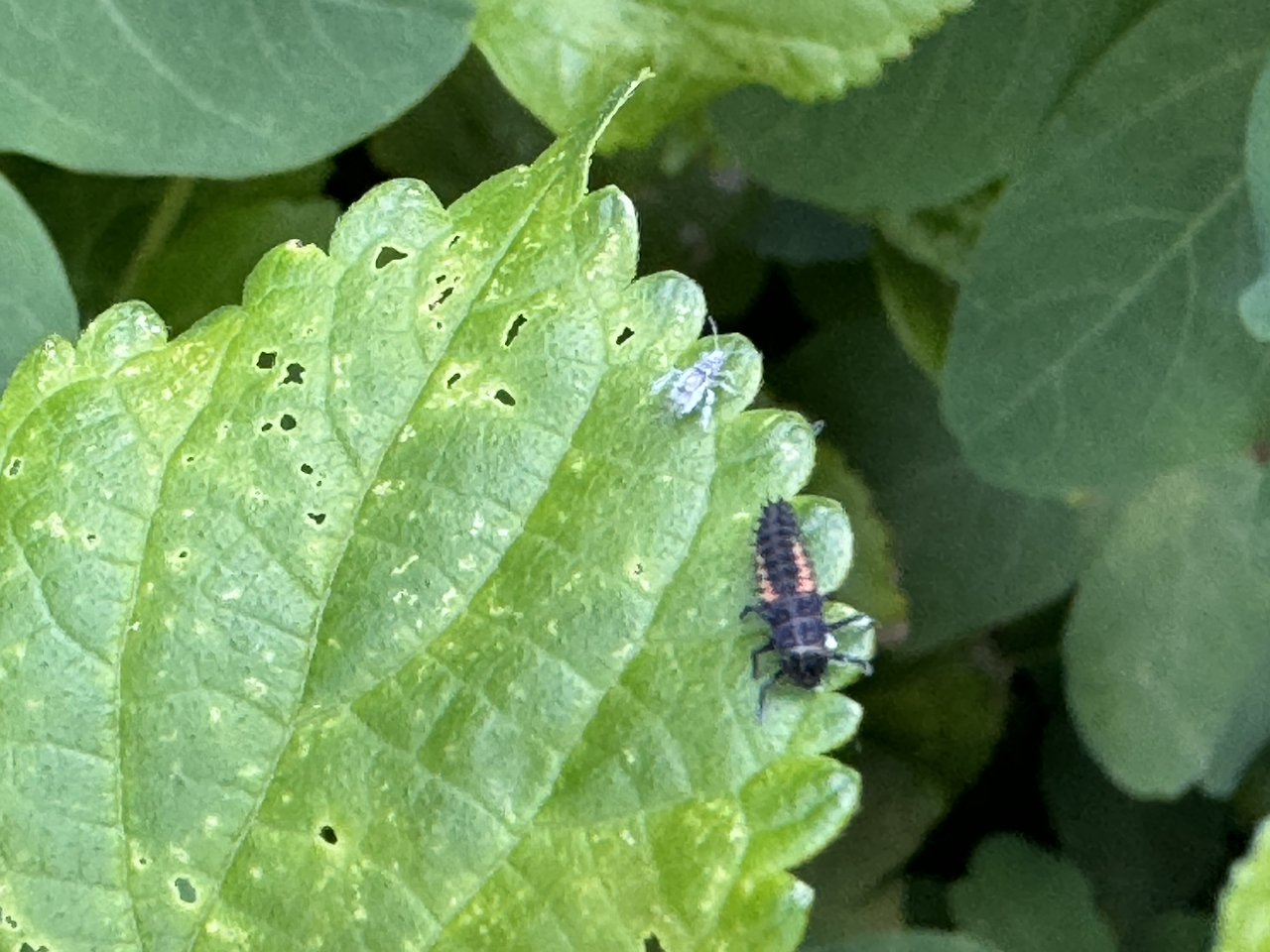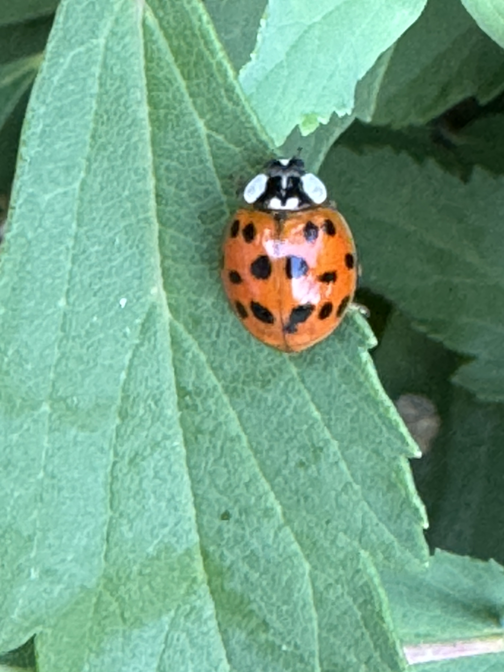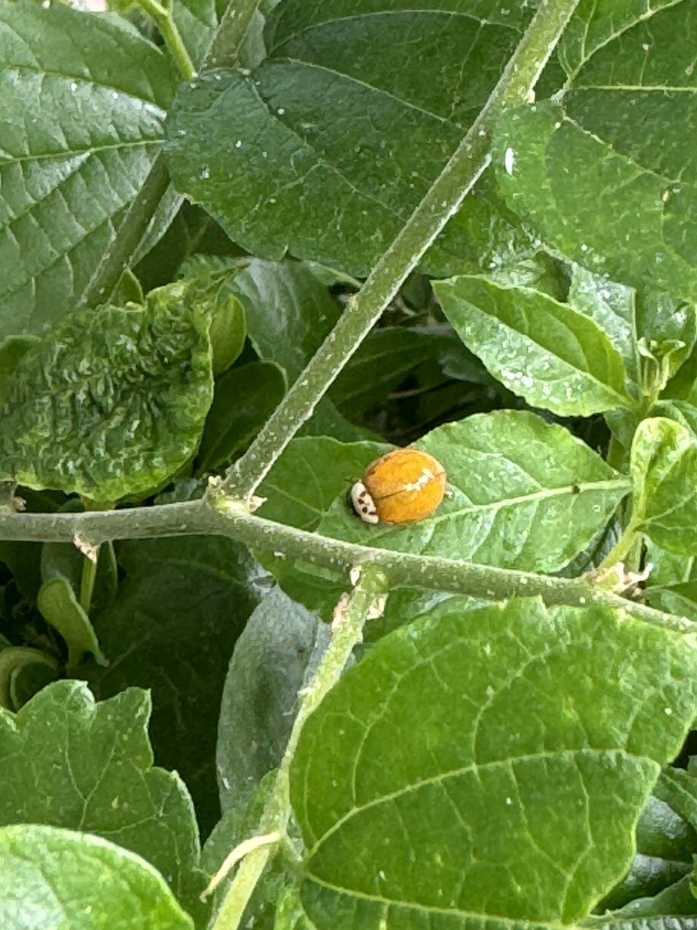 요새 칠성 무당벌레보다 이십점박이 무당벌레가 많아졌어요. 칠성 무당벌레는 진딧물을 잡아먹는 육식입니다. 반개로 이십점박이 무당벌레는 초식입니다. 그래도 가끔 남의 알을 먹기도 하면서 동족포식을 합니다.