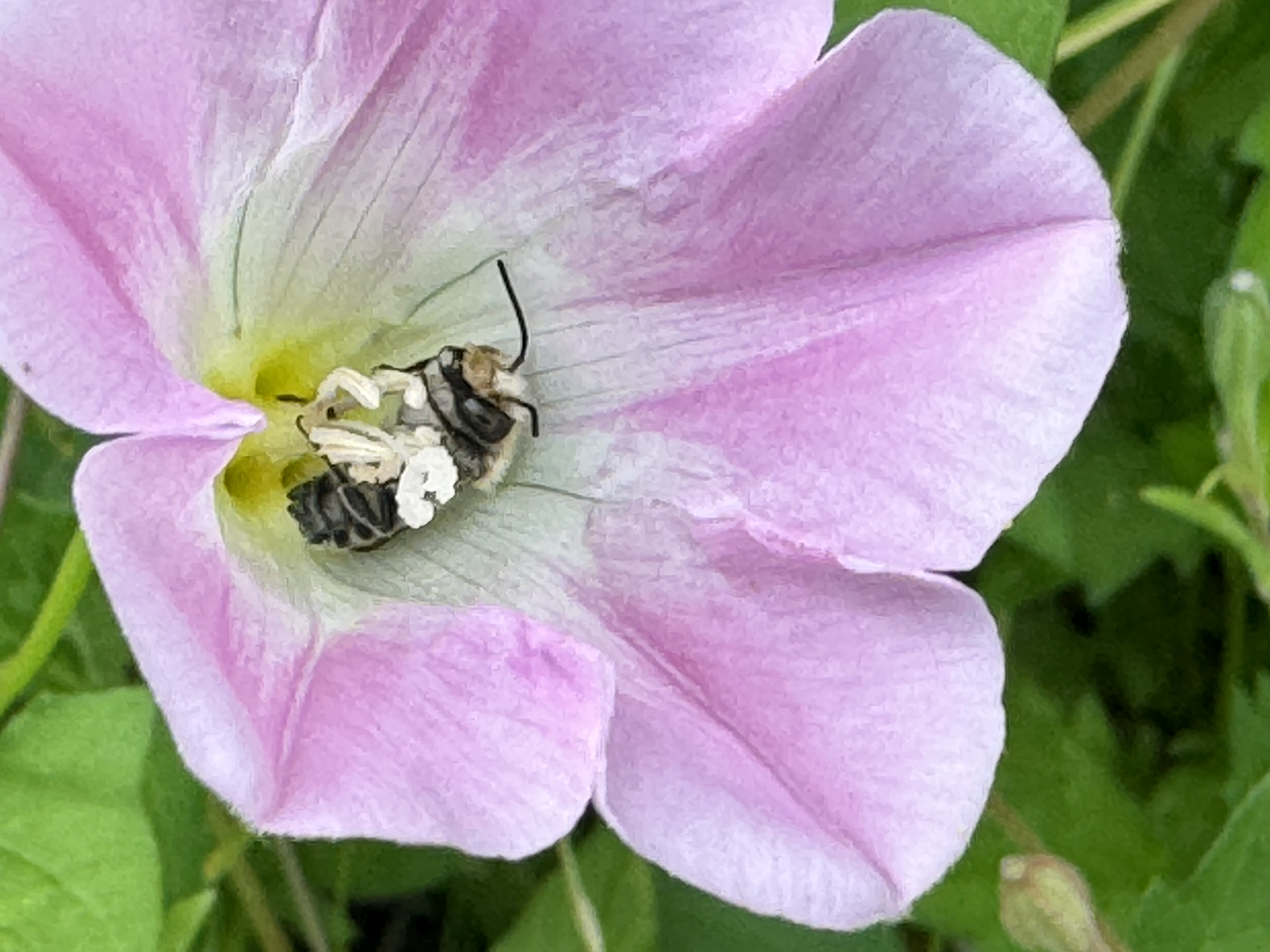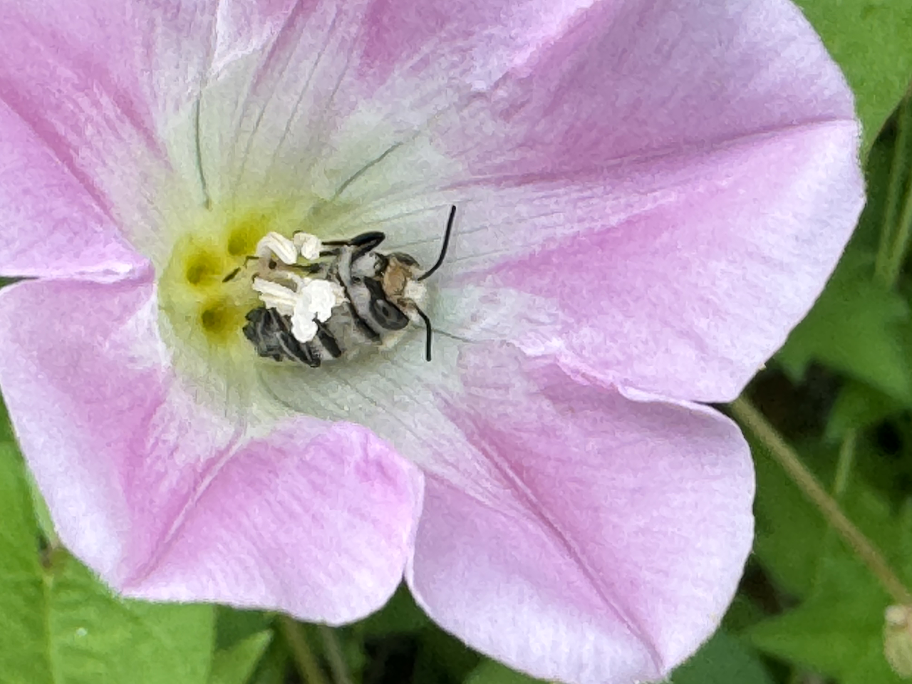 가위벌이 벌러덩 메꽃에 누웠습니다.