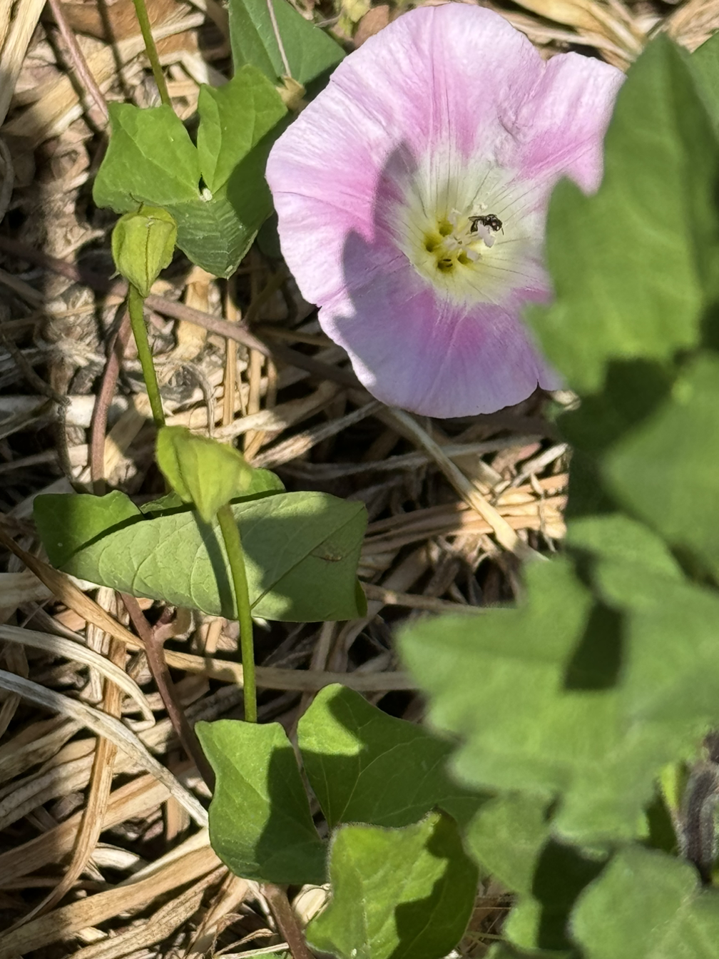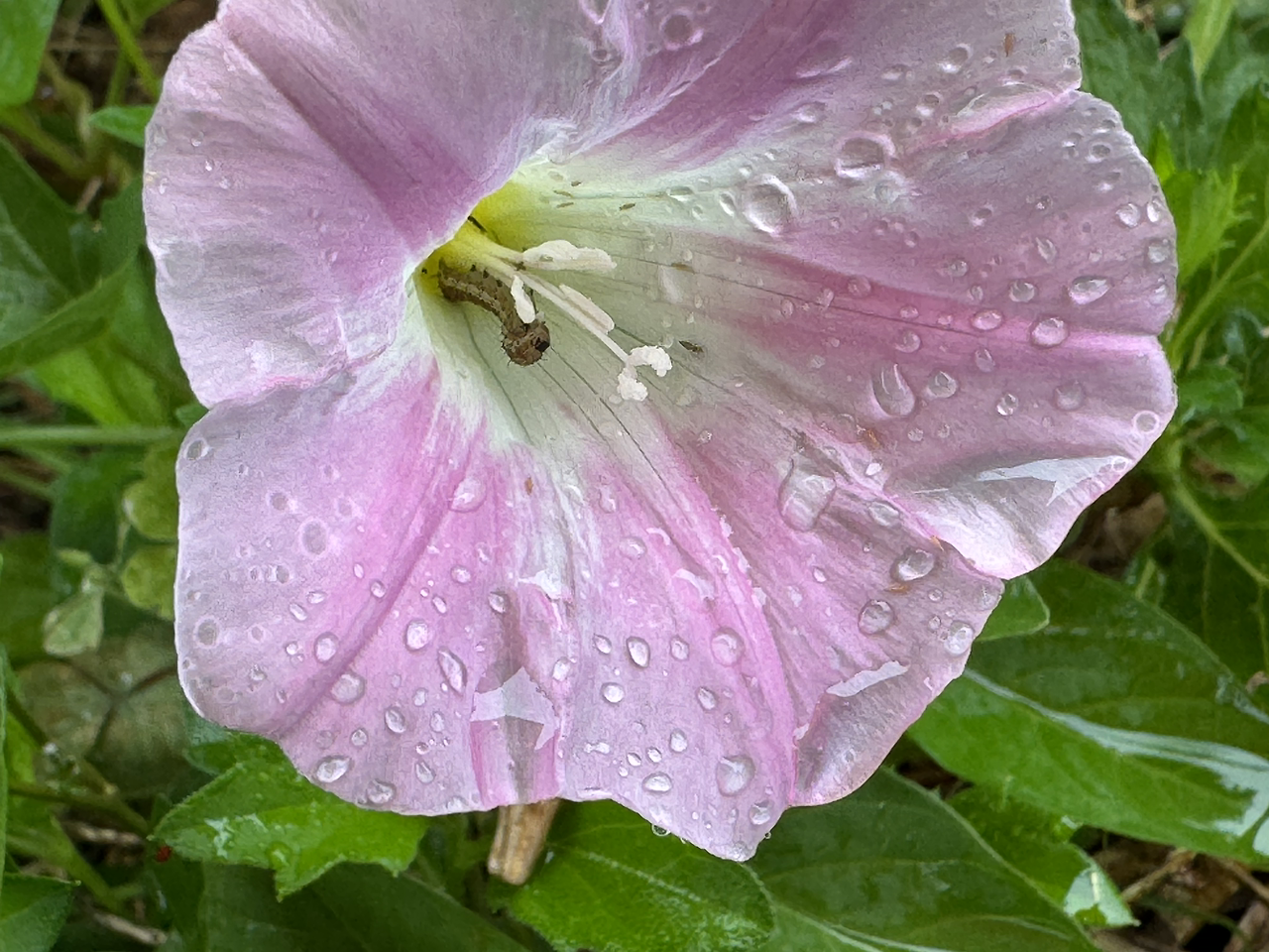 요기 메꽃에는 아가 애벌레가 수술을 갉아먹고 있습니다.