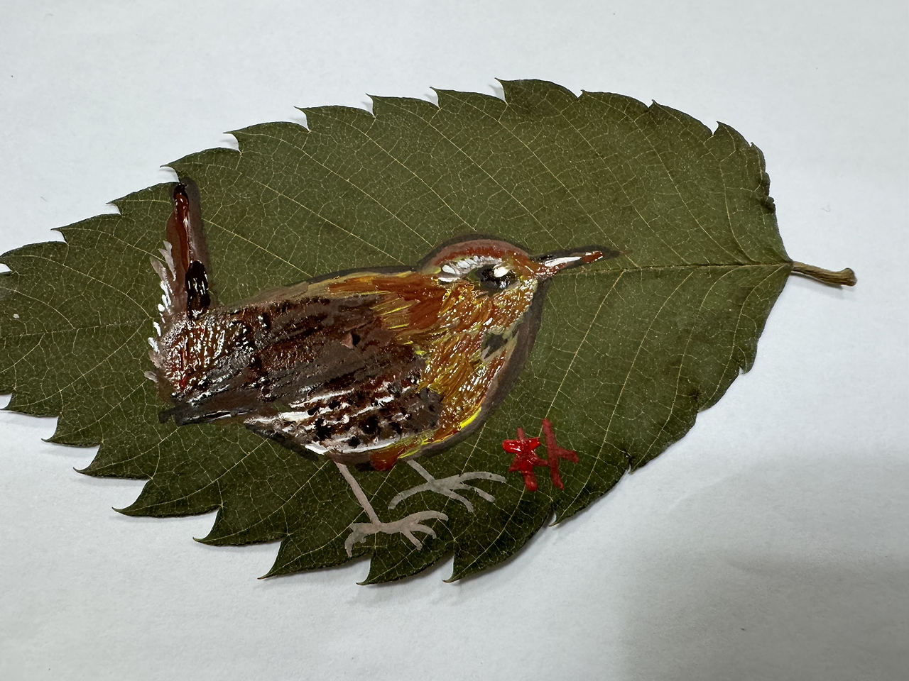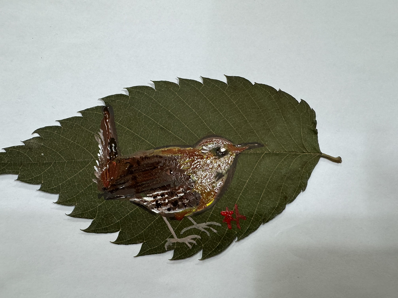 #굴뚝새 #나뭇잎화 #아크릴화 #새그림