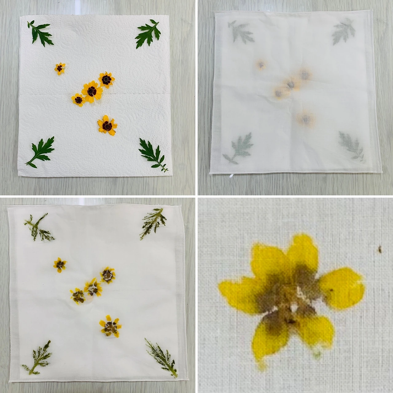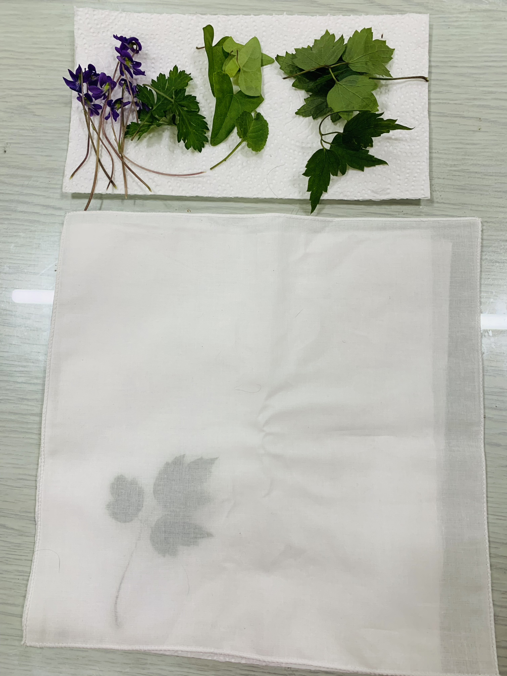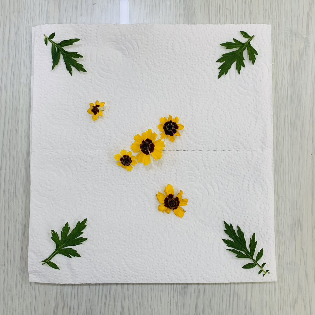 밑에 키친 타올을 깔고 색깔을 들이고 싶은 자연물을 배열해주세요.