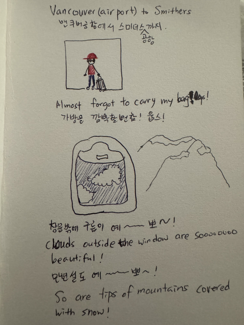5:45분에 한국에서 출발해 11:45에 캐나다에 도착했어요. 미래에서 과거로 온 기분이랄까요?