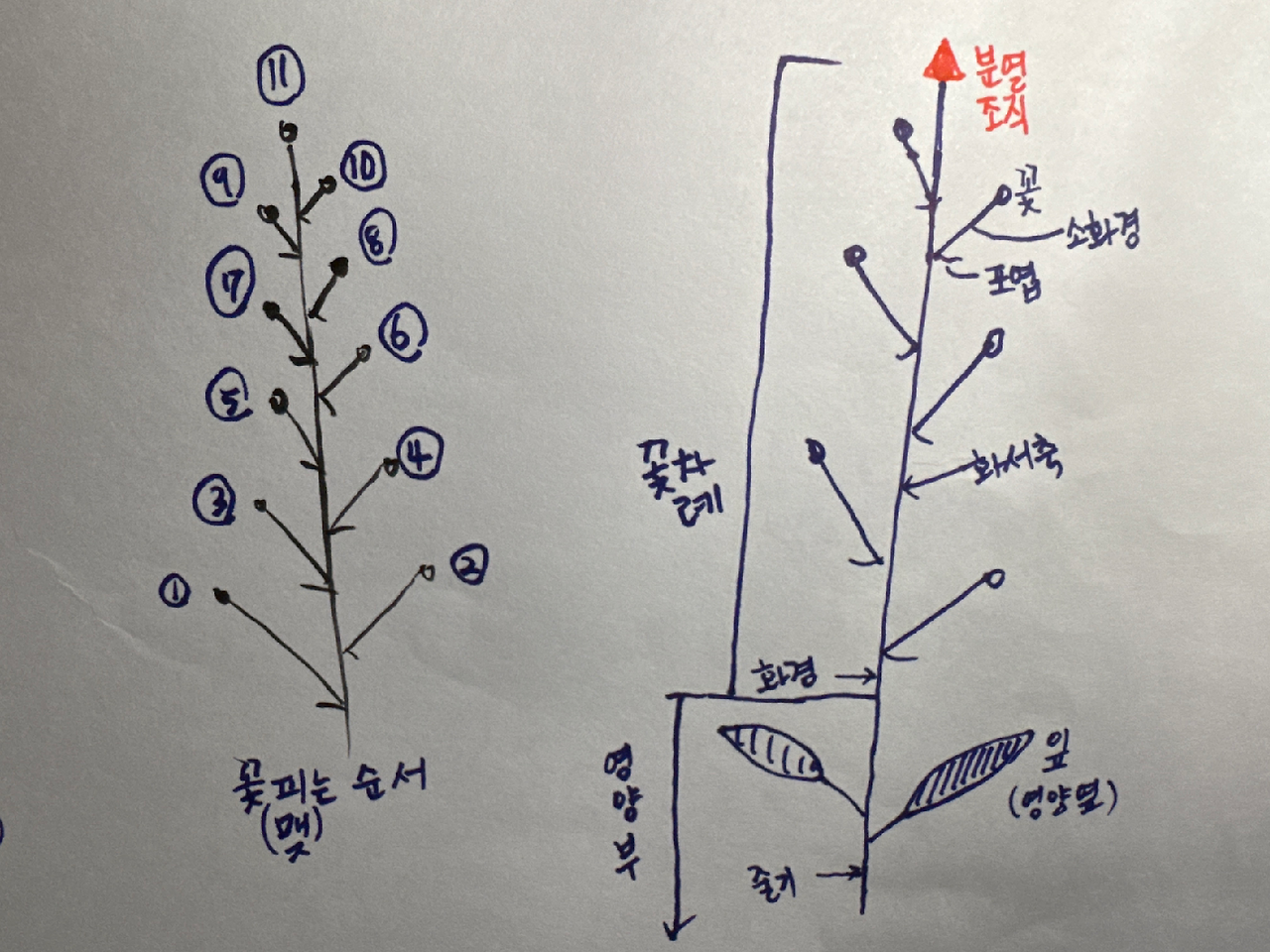 꽃차례는 총상화서이고 어긋나기로 나 있습니다.