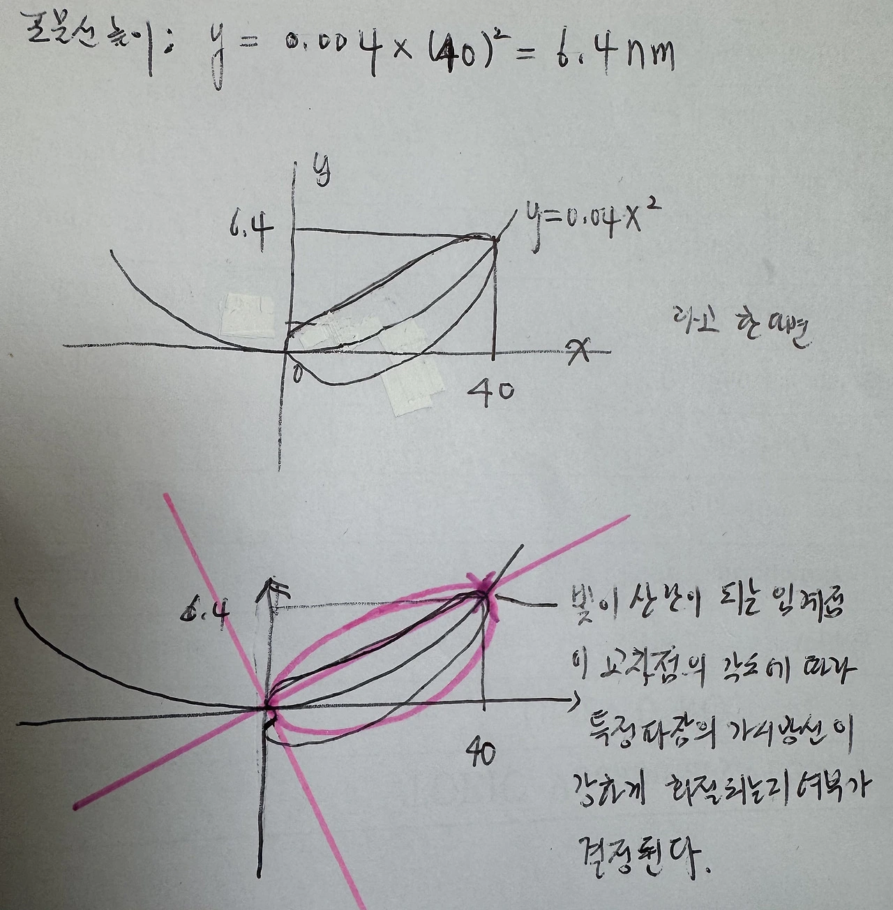 여기에는 타원(곡률)과 사인법칙(브래그 법칙)이 작용합니다.