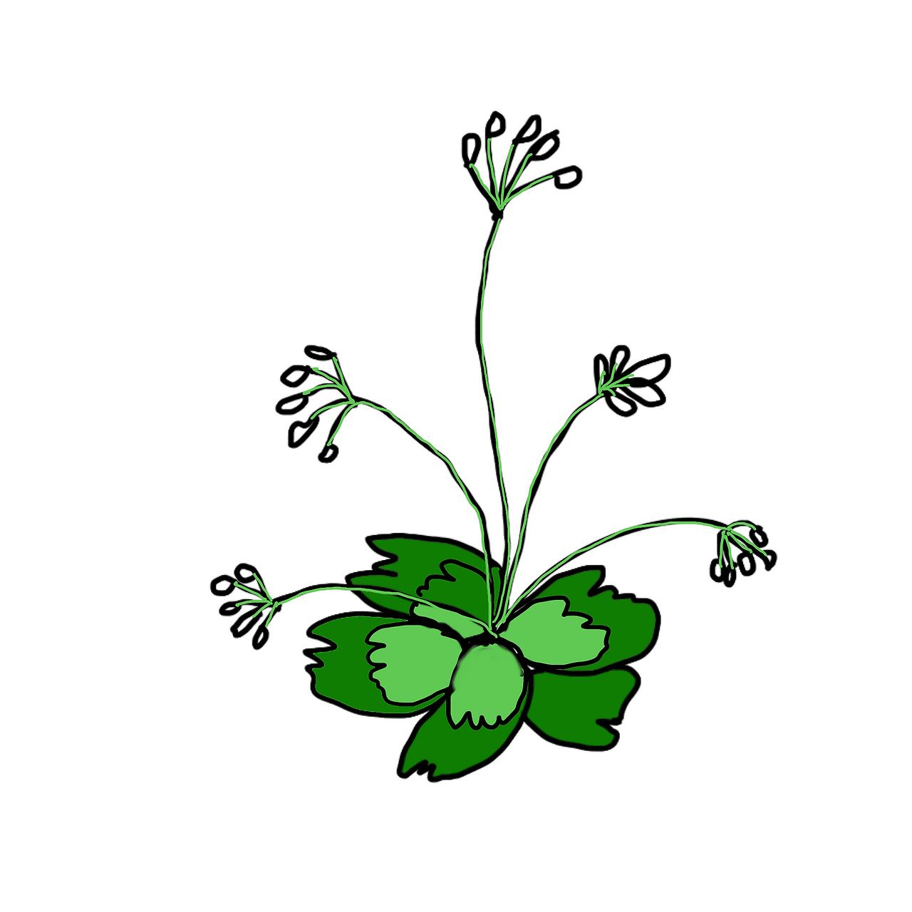 다섯개의 꽃이 모여서 한 화경을 이루고 있고 또 다른 화경에 또 다른 다섯개의 꽃이 모여 납니다.