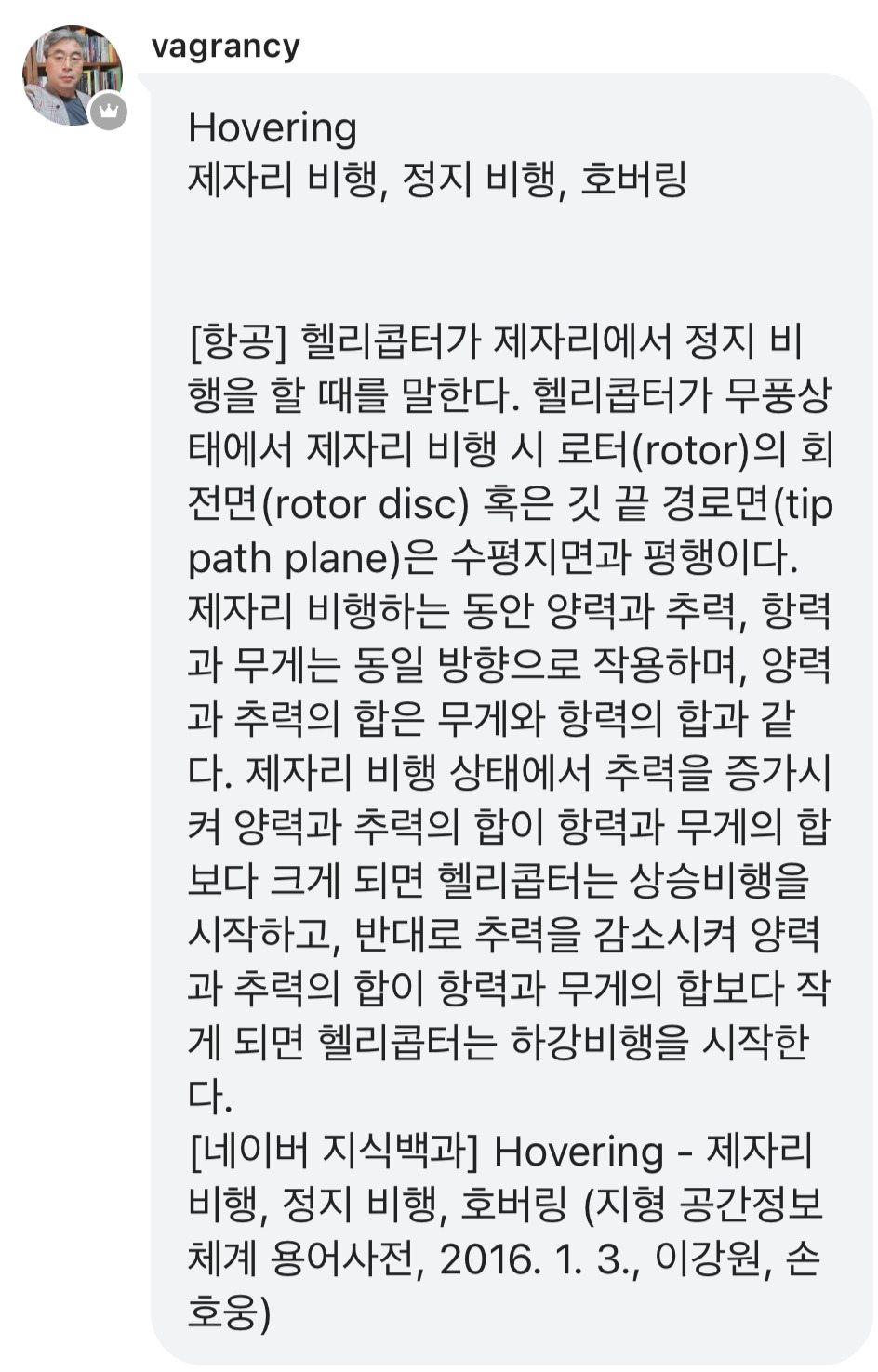 두 힘의 벡터가 서로 상쇄되면서 정지비행이 됩니다.
