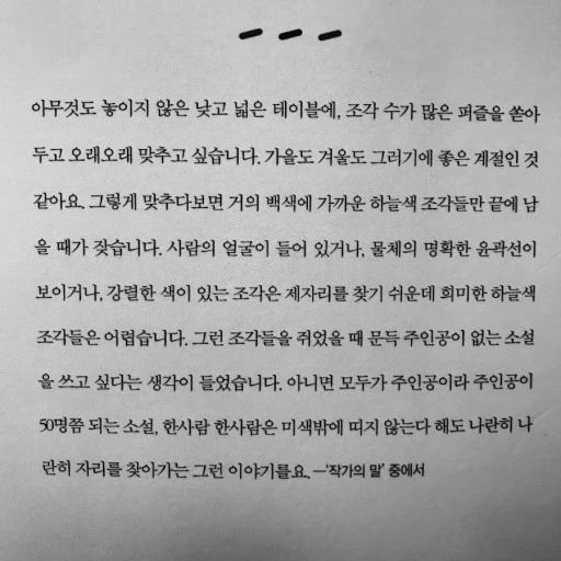 언제부터였을까? 나 없는 곳에서도 세상은 여전히 움직이고 있다는 것을 깨닫게 된 것은. 언제부터였을까? 내가 더 이상 세상의 중심이 아니라는 것을 깨닫게 된 것은.