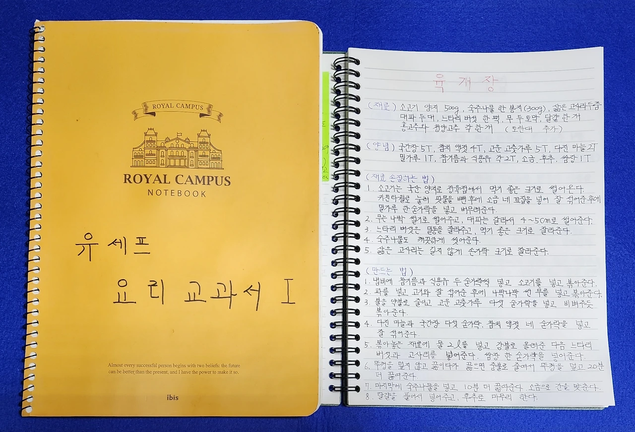 나도 요리하는 걸 좋아하지만, 친정엄마처럼 음식을 뚝딱 만들진 못한다. 새로운 요리할 때마다 손글씨 레시피를 꼼꼼하게 적어두고, 요리할 때 레시피 노트를 펼쳐서 옆에 두고, 수학 공식처럼 정확하게 계량해서 요리한다. 대신 실패할 확률은 적다. 퇴직하며 쓴 손글씨 레시피 노트가 벌써 두 권째다.