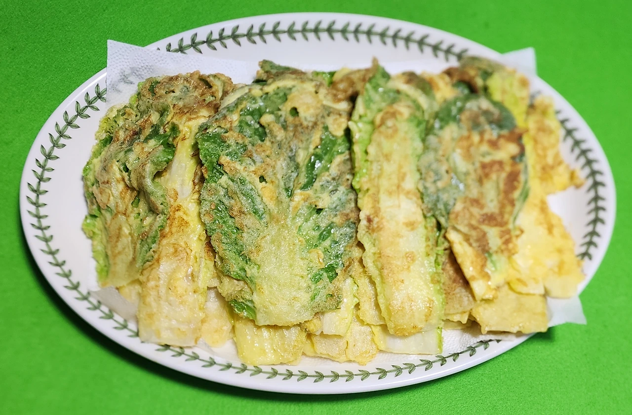 나는 전 부치는 것을 좋아한다. 특히 채소전을 좋아한다. 겨울이면 알 배추로 배추 전을 자주 부쳐 먹고, 향긋한 미나리전도 자주 부쳐 먹는다. 봄에 쑥이 나오면 쑥 전도 부쳐 먹는다. 그냥 배추 전은 부침가루와 튀김가루, 달걀만 있으면 가능하고, 미나리전은 더 간단해서 부침가루와 튀김가루만 있으면 가능하다. 식사 전에 간단하게 만들 수 있는데 맛도 좋아서 남편도 좋아한다.
