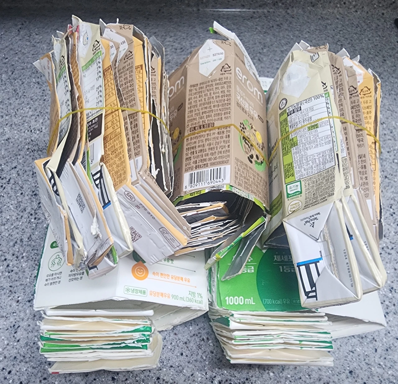 사부인 걱정하는 이야기를 듣고 보니 내가 너무 안이하게 생각하고 있었나 하는 생각이 들었다. 종량제 봉투가 품절될지도 모른다는 생각이 들었다. 그동안 모아둔 우유 팩을 꺼내 보았다. 1000㎖ 우유 팩이 20개가 넘었고, 300㎖ 멸균 팩이 30개가 되었다.