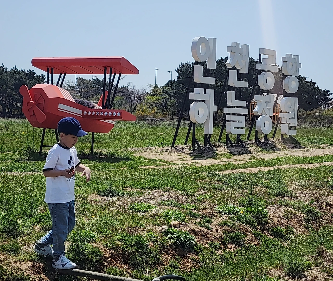 지우가 비행기 착륙하는 것을 보러 간다고 해서 인천공항 여객터미널에 가는 줄 알았는데 인천공항 하늘 정원에 가면 비행기가 머리 위에서 착륙하는 것을 볼 수 있다고 하셨다. 몇 분마다 여러 나라의 비행기가 착륙하는 것을 볼 수 있는 곳이다. 지우는 외할아버지 외할머니와 비행기 착륙하는 것을 잘 보고 왔단다. 지우도 오늘 즐거운 하루였다.
