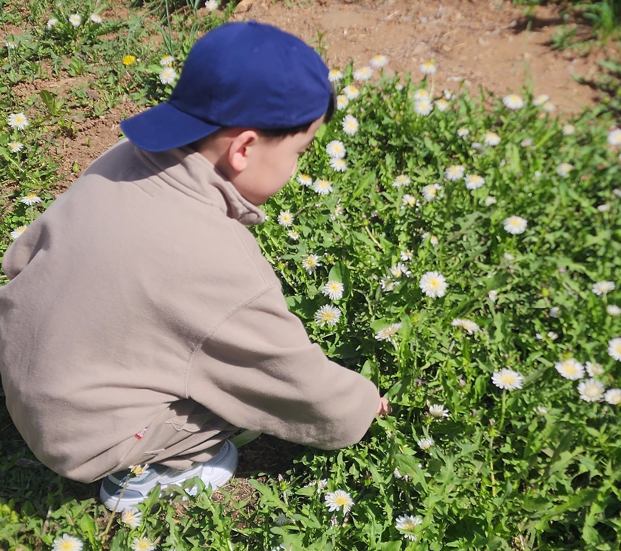 꽃 좋아하는 손자는 하얀 민들레 찾아서