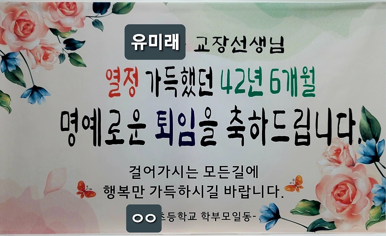 ㅇㅇ이가 2년 동안 전교 임원을 하며 경험한 것들이 중학교에 가서도 교우관계나 학교생활하는데 많은 도움이 되었어요. 특히 교장선생님께서 항상 격려해주시고 칭찬해주신 기억들이 ㅇㅇ이에게 큰 힘이 되었던 거 같아요. 모두 교장선생님 덕분입니다. 진심으로 감사드립니다!!♡