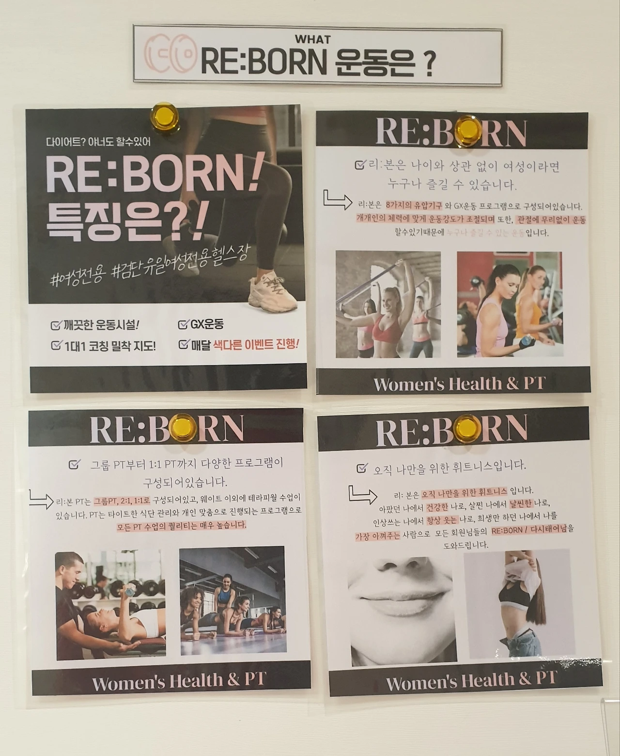 이곳에서 꼭 운동하고 싶었다. 상호명도 '리:본-다시 태어나다'이다. 여기서 운동하면 왠지 젊음도 찾을 수 있을 것 같았다. 강사님과 상담할 때 내가 허리 협착증이 있어 조금 안 좋고 유연성도 없고 근육량도 너무 적다고 말씀드렸다. 괜찮다고 한다.