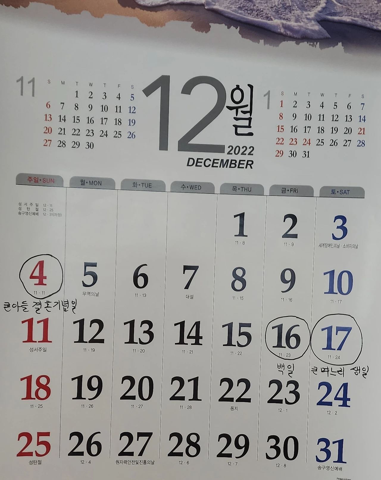 12월은 큰아들 결혼 1주년 기념일