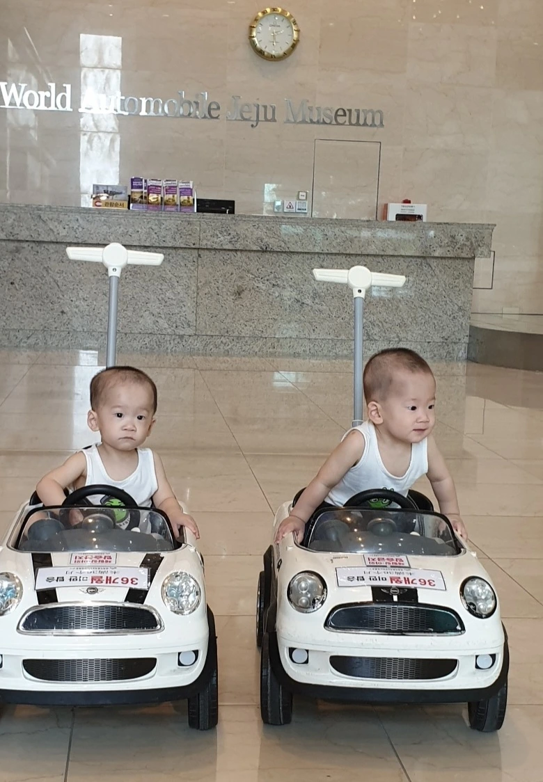 둥이가 돌 지날 때쯤 아파트 상가에 있는 미용실에 머리를 밀러 갔다. 물론 아들 며느리에게 허락받고 한 일이다. 나랑 할아버지가 데리고 갔는데 할아버지는 미용실 밖에서 큰 손자를 쌍둥이 유모차에 태워서 상가를 빙빙 돌고 둘째는 먼저 머리 깎을 준비를 하였다.