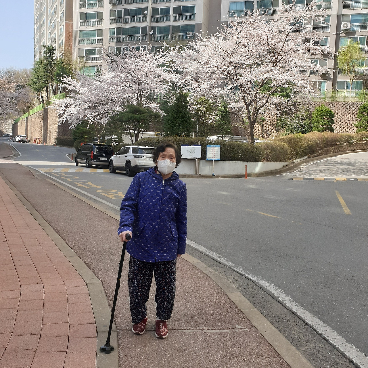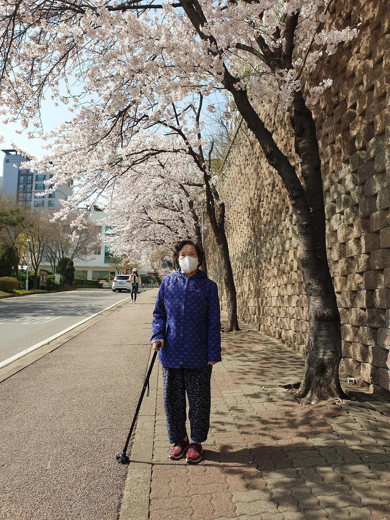 작년 이맘때 허리가 조금 안 좋으신 친정엄마가 지팡이를 집고 내가 엄마 팔을 잡아 부축하며 아파트 벚꽃 길에서 꽃구경하던 일이 생각난다. 사진도 찍어 드리고 걸으며 옛날이야기도 하였다.