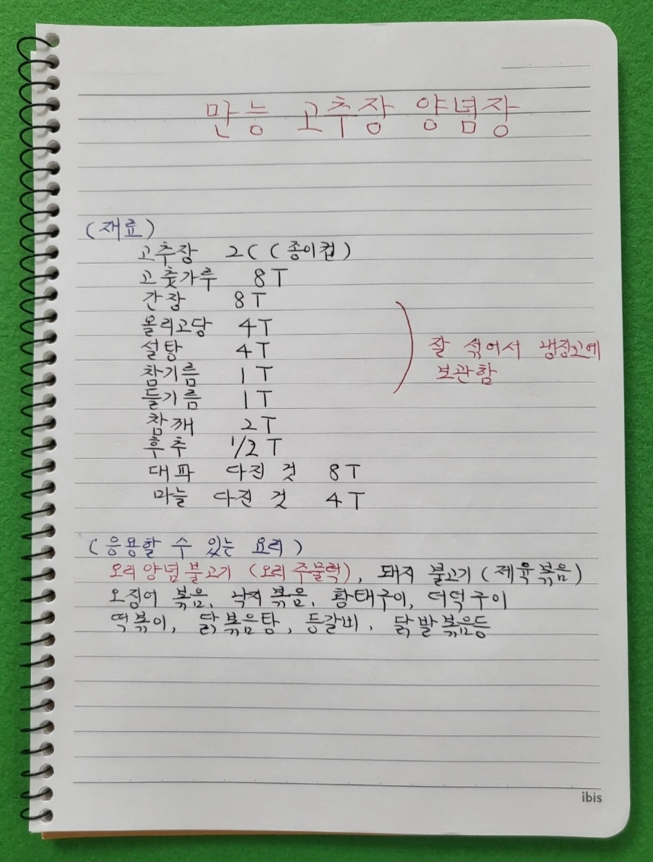 우선 만능 고추장 양념을 만들었다. 양념을 만들어 놓으면 여러 가지 요리를 할 수 있다. 돼지 양념불고기(제육볶음), 오징어볶음, 떡볶이, 닭발볶음. 낙지볶음, 닭볶음탕, 황태구이, 더덕구이 등 매운 음식을 할 수 있다. 한번 만들어 놓으면 서너 번 정도 요리할 수 있다.
