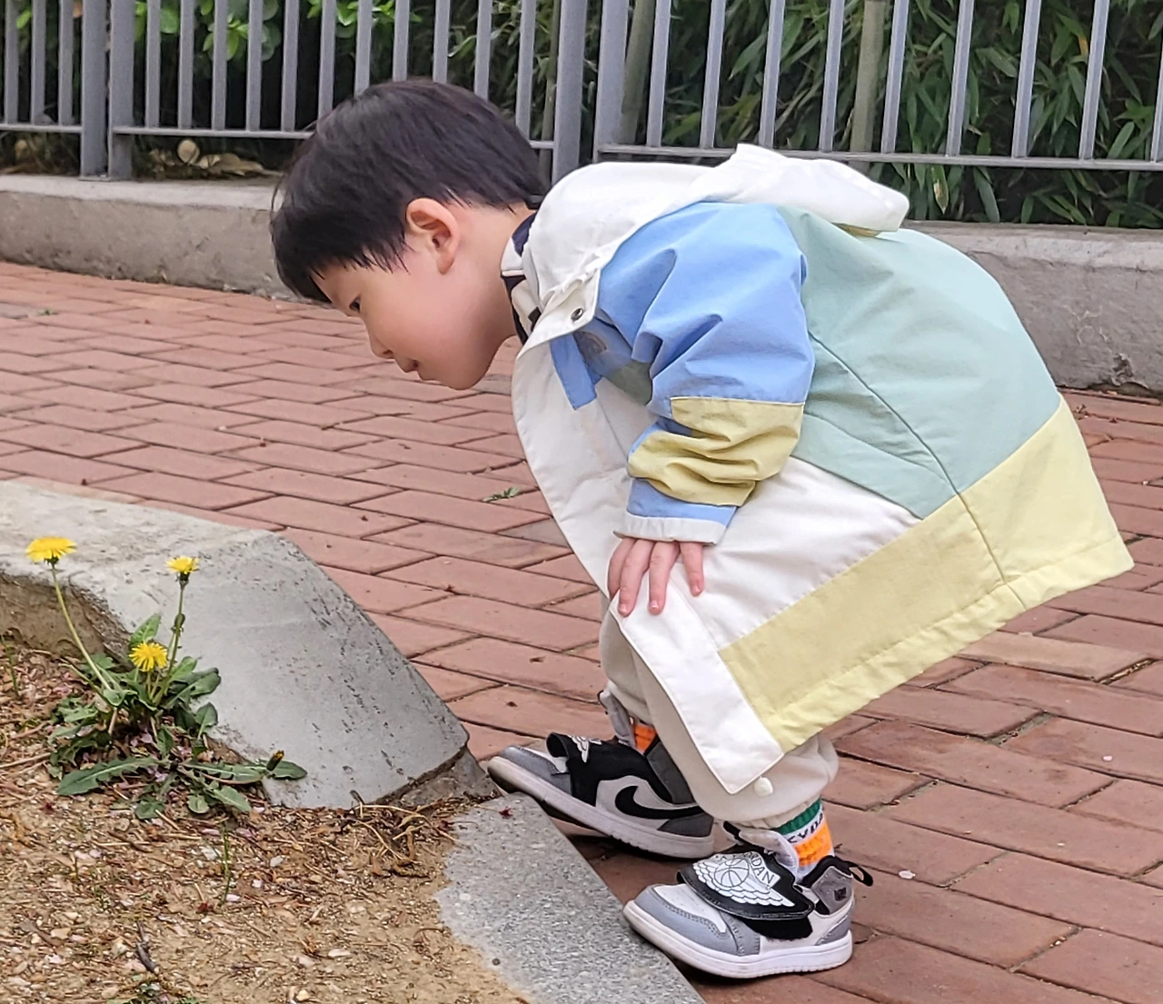 민들레꽃 보러 공원 가자고 손 잡아끌던 손자