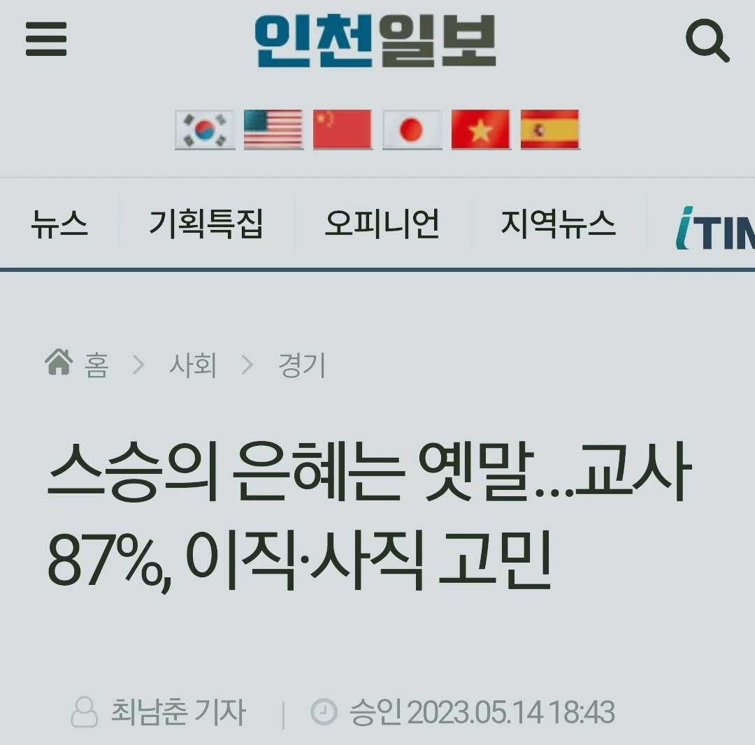 교대에 합격하고 임용고사에 어렵게 합격하여 교단에 서지만 매년 많은 선생님들이 이직을 고민하고 교단을 떠난다. 참 안타깝다. 다양한 원인이 있겠지만 첫째가 생활지도가 어렵기 때문이 아닌가 생각된다. 학생들을 훈육하는 과정에서 한 행동이나 말로 아동학대로 고발되어 재판으로 이어져 어려움을 겪는 선생님들이 많다. 선생님들께서 보람을 느끼며 학생들과 더불어 행복한 학교이길 바란다.