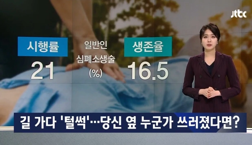 사람의 뇌는 4~5분 정도면 뇌사 상태가 되는데 소방차는 평균 7분 정도에 도착한다고 한다. 소방관이 현장에 도착하여 심폐소생술을 하면 이미 늦어버리기에 현장에 있는 사람이 구급차가 오기 전까지 심폐 소생술을 하는 것이 그만큼 중요하다고 한다. 얼마 전에도 길 가다가 털썩~ 쓰러진 분을 지나가던 여자분이 심폐 소생술로 살렸다는 뉴스를 보았다. 그 외에도 사례는 정말 많다.