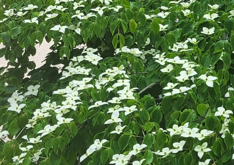 아파트 베란다 앞 산딸나무가 꽃을 활짝
