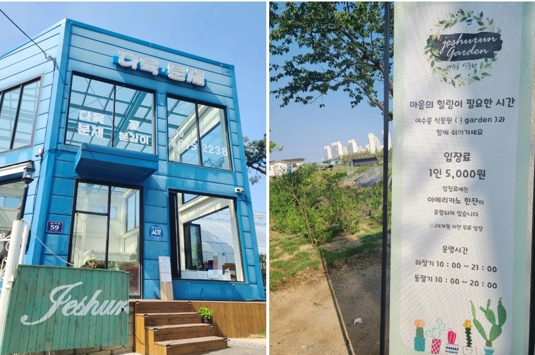 조금 더 지나니 벚꽃 길에 들어섰다. 식물원이 김포 벚꽃 길 옆에 위치하고 있었다. 식물원 이름이 '여수룬 식물원'으로 참 특이했다. '여수룬'은 성경에 나오는 말로 ‘온전하고 의로운 자, 올바른 자, 곧은 사람.’으로 하나님과 친밀한 관계 속에 있는이스라엘 민족을 가리키는 말이라고 한다. 카페를 운영하는 동생의 큰오빠가 처음 카페 자리 땅을 사고 식물원 이름을 고민할 때 큰 오빠가 다니는 교회 목사님께서 지어주신 이름이라고 했다.