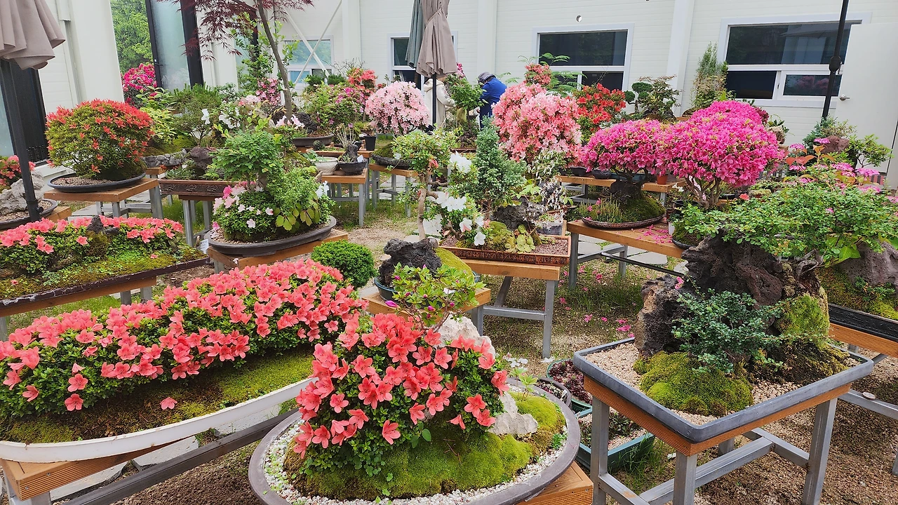 식물원은 550평 위에 지어진 건물로 첫 번째 방은 유리온실로 다양한 분재가 전시되어 있었다. 주로 철쭉 종류인데 일본 등 외국에서 들여온 것이 많았고 친정어머니께서 40년 정도 키운 것도 있다고 했다. 오늘따라 꽃이 많이 피어서 정말 아름다웠다. 이렇게 다양한 철쭉꽃은 처음 보았다. 늘 길에서 보았던 영산홍과 알고 있는 철쭉이 아니었다. 사실 이 식물원 카페를 내게 된 것은 91세이신 친정어머니께서 늘 화초를 좋아해서 하우스를 지어 식물을 관리하셨는데 어머니를 위해 만들어 드리고 싶었다고 한다.