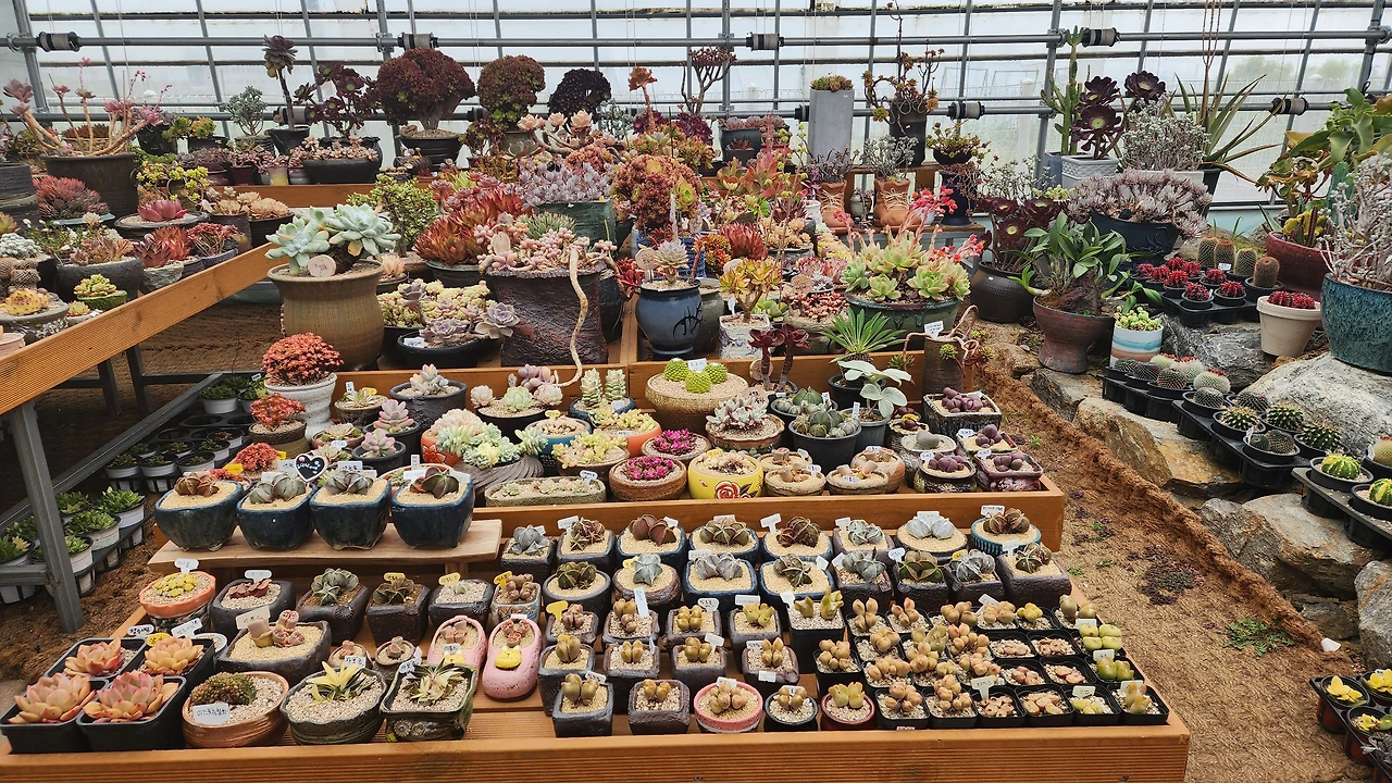 두 번째 방은 비닐하우스로 만들었는데 다육 식물이 가득 차 있었다. 이렇게 다양하고 화려한 다육 식물은 처음 보았다. 하나하나 살펴보니 처음 보는 다육 식물이 많았다. 꽃이 핀 것도 있었고 화분에 심어졌지만, 대형 다육이도 있었다. 정말 오래 가꾼 것임을 알 수 있었다. 내가 가장 못 키우는 것이 다육 식물이다. 어쩌다가 다육이를 선물 받으면 처음에는 잘 키우다가 서너 달 지나면 죽고 말았다. 그래서 다육이는 잘 키우지 않는다. 이렇게 싱싱하게 키우려면 많은 정성과 노력이 필요할 것 같다.