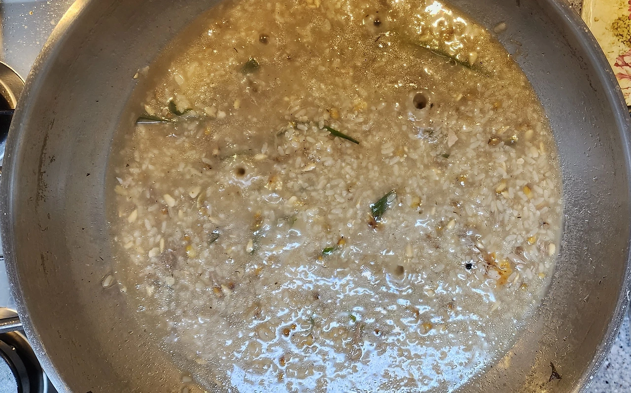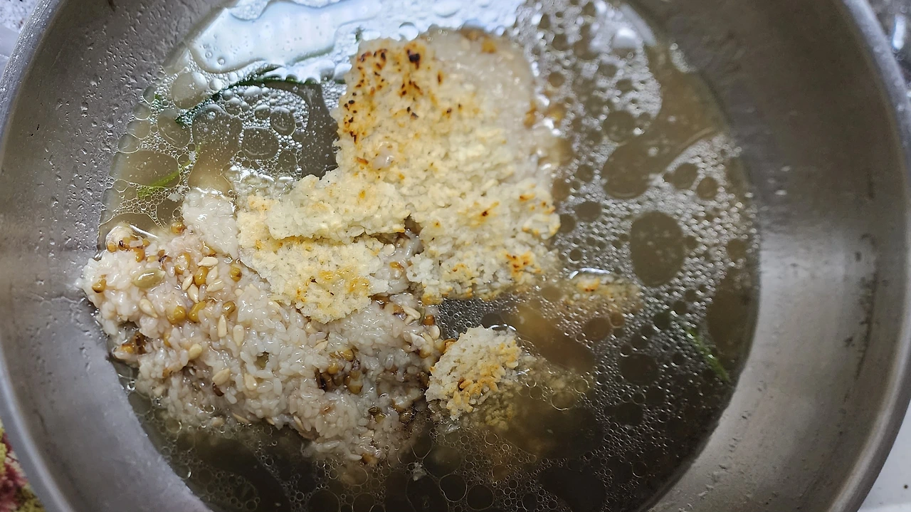 포장용기에서 꺼내서 커다란 전골냄비에 옮겨 펄펄 끓였다. 마지막에 부추를 넣었다. 부추를 정말 많이 보내주었다. 고기도 고기지만 한약재가 많이 들어 있어서 국물이 진국이다. 고기와 국물을 먹은 다음에는 보내준 녹두밥을 남은 국물에 끓여 녹두죽을 쑤어 먹는데 이것도 별미다. 아들이 누룽지를 함께 넣으면 맛있다고 하여 지난번에 만든 수제 누룽지를 같이 넣었다. 죽이 기가 막히다.