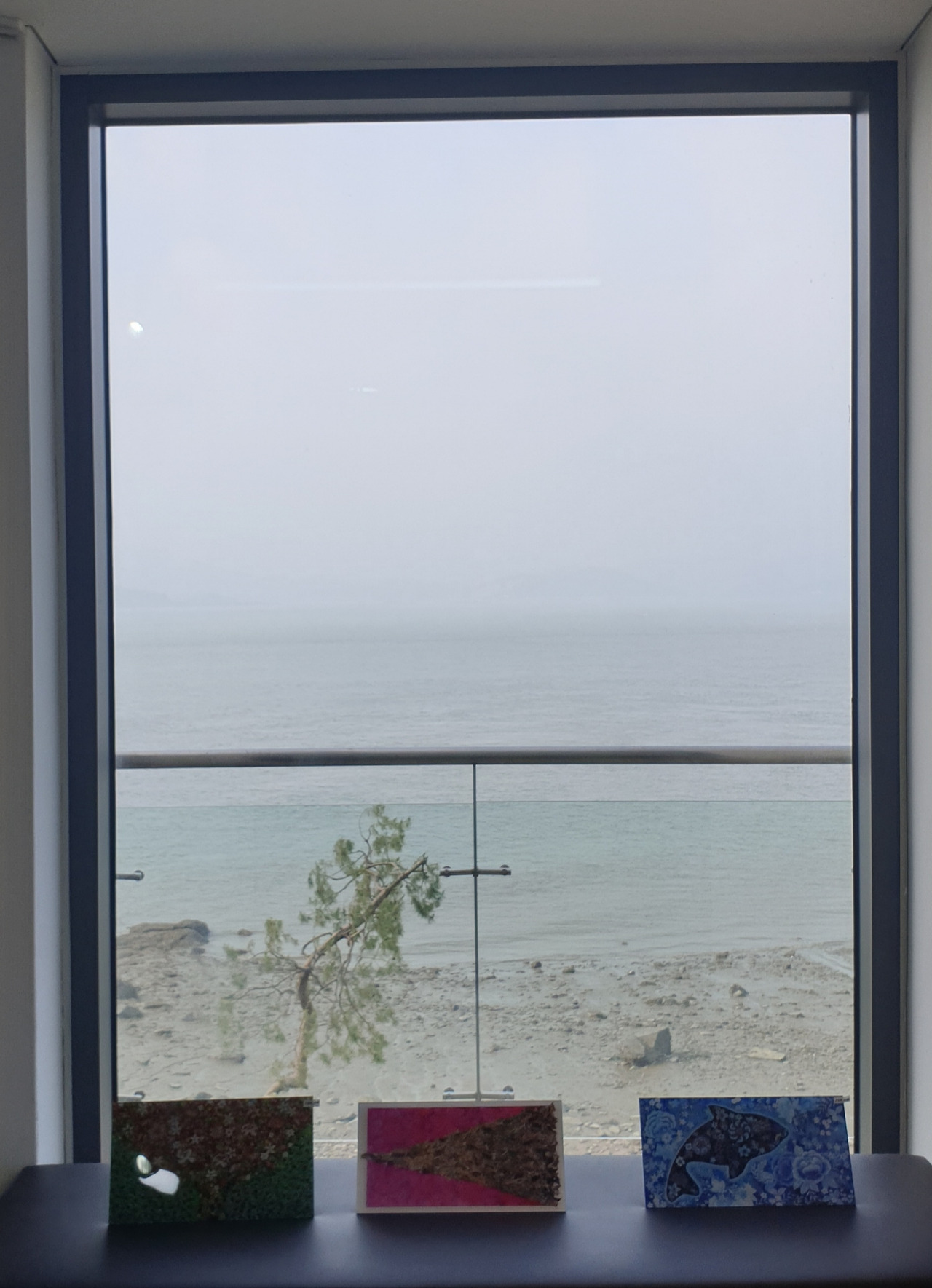 희뿌연 날씨와 흐릿한 바다 어딘가에서