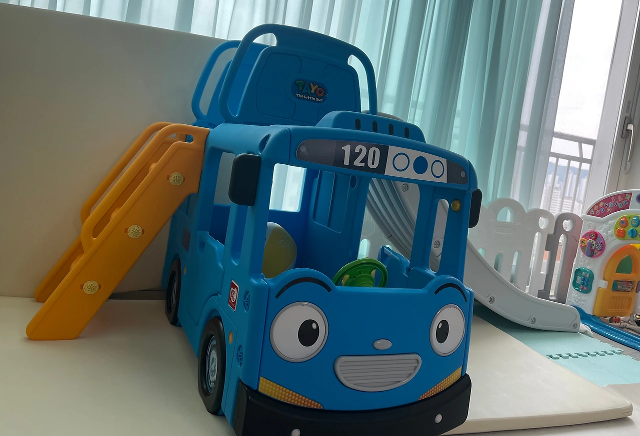 아들이 당근에서 산 타요 자동차가 달린 미끄럼틀은 준우가 정말 좋아한다. 자동차 안에 볼풀공을 잔뜩 넣어주었다. 자동차에 앉아서 운전도 하고 공놀이도 한다. 영상 통화를 하는데 준우가 미끄럼틀 계단을 혼자 올라가서 깜짝 놀랐다. 운동 신경은 타고난 것 같다.내려올 때는 서서 내려오려고 해서 잡아준다고 했다. 엄마 아빠가 옆에서 잘 지켜봐야 하겠다.