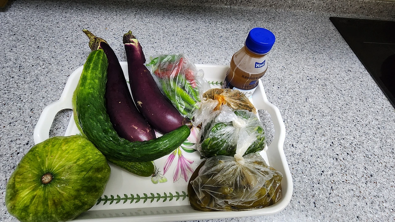 이제 아쉬움을 뒤로하고 헤이질 시간이다. 친구 둘이 친정엄마처럼 오이 두 개, 가지 두 개, 호박 한 개, 청양고추 그리고 깻잎 삶은 것, 오이장아찌 등등 봉지봉지 싸서 들려주었다. 땡볕에 농사짓느라고 힘들었을 텐데 챙겨준 친구가 고맙다. 다음에 만날 약속하고 아쉬움을 뒤로한 채 서울로 향했다.