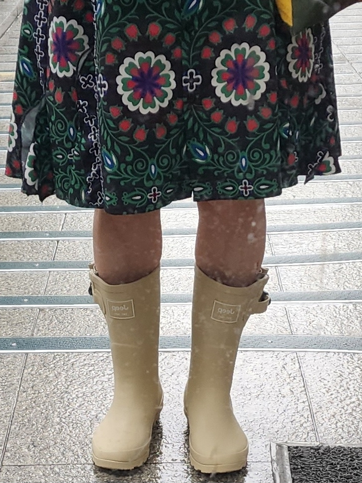 지하철에서 내려 걸어가는데 반대편에서 젊은 아가씨가 나랑 똑같은 장화를 신고 걸어오고 있었다. 모양도 색상도 똑같았다. 바지를 장화에 넣고 신었다. 안 보는 척하다가 나도 몰래 쳐다보게 되었다. 다른 사람이 신은 모습을 보니 정말 괜찮아 보였다. 젊은 분도 신는 장화라고 생각하니 주문하길 잘했다는 생각도 들었다. 학교까지 우산을 쓰고 걸어가는데 불편하지 않았다.