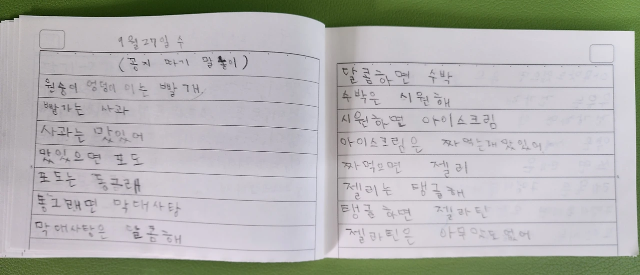 요즘 아이들은 글씨 쓰기를 싫어한다. 초등학교 교육과정도 교과서에 답을 쓰면 되어서 공책에 글씨 쓸 일은 많지 않다. 옛날처럼 과목별로 노트를 준비하지도 않는다. 배움 공책이라고 공책 하나에 필요할 때 필기를 한다.