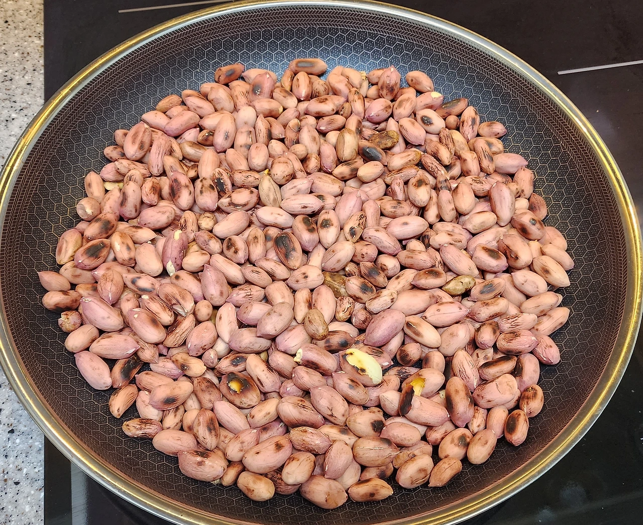 전기 레인지에 10분으로 타이머를 맞추고 타지 않도록 중불로 볶았다. 보기에도 잘 볶아진 것 같았다. 땅콩이 식은 후에 먹어 보니 정말 고소하고 맛있었다.이렇게 맛있는 땅콩은 처음인 듯 자꾸 손이 갔다.