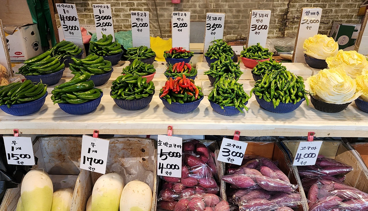 친정엄마가 강릉에 혼자 사셔서 가끔 내려가면 강릉 중앙시장에 데려가셨다. 시장에 가서 난전(길거리)에 앉아서 채소를 파시는 어르신이 많았다. 시골에서 농사지으신 것을 가지고 오셔서 한 무더기씩 쌓아 놓고 파셨다.
