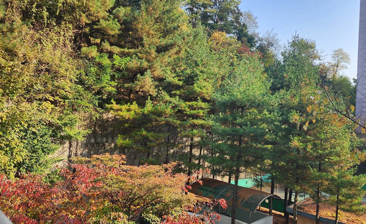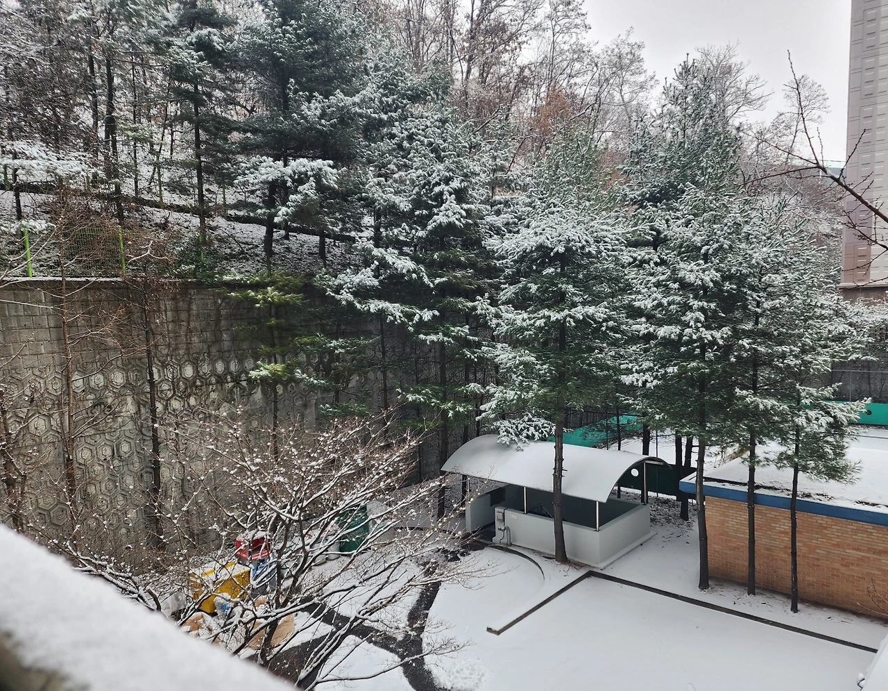 아파트 옆에 동산도 있고, 아파트 단지와 연결된 근린공원도 있다. 베란다에서 눈 오는 산을 볼 때면 꼭 시골 별장에 있는 기분이 든다. 요즘 세컨드 하우스가 유행이지만, 하나도 안 부럽다.