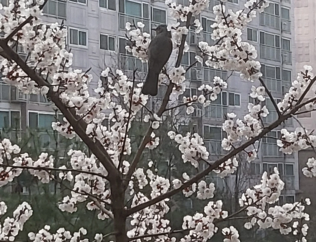 아파트가 오래되다 보니 아파트 나무도 함께 나이 들어 녹음이 우거졌다. 봄이면 아파트 산책길 양쪽에 20년이 넘는 벚나무가 벚꽃으로 화려하다. 벚꽃 구경을 갈 필요가 없다. 곳곳에 있는 키 큰 잣나무도 멋지다. 우리 집 베란다 앞 살구나무에는 살구꽃이 떨어진 자리에 주황색 살구가 주렁주렁 달리고, 여름에는 새들의 보금자리가 된다. 새집을 짓고 알을 품어 새끼 새도 태어난다.