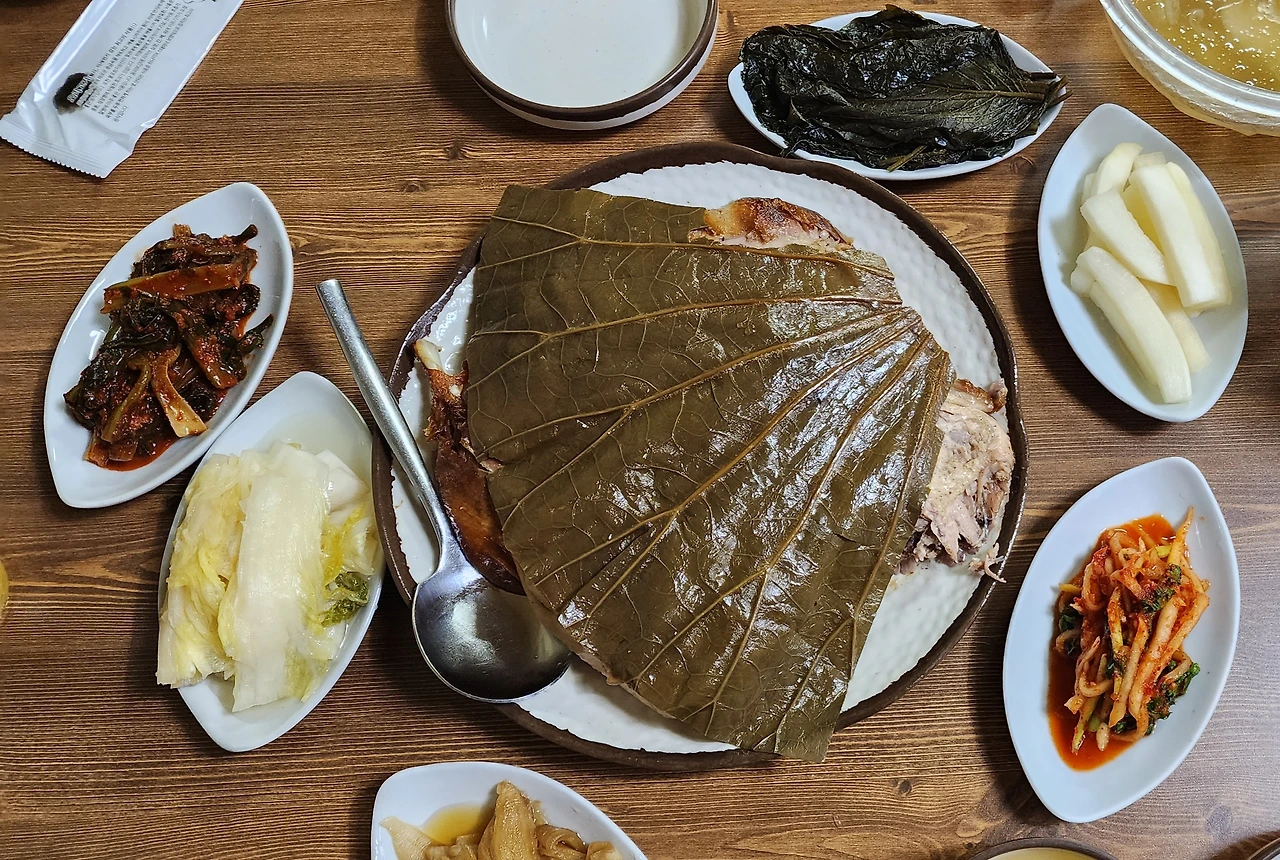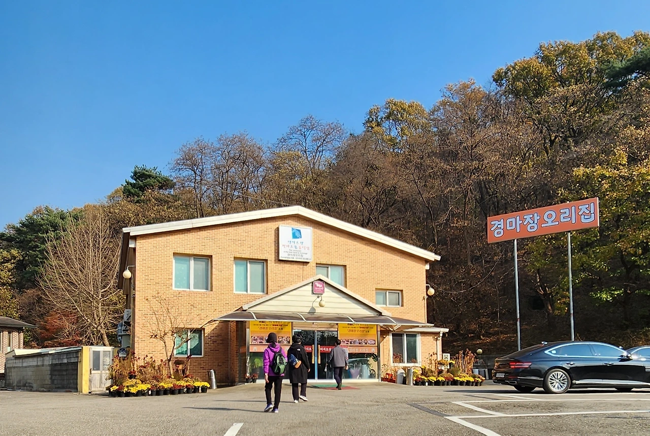 2시간 30분 정도 걸었더니 모두 시장하다고 했다. 예약해 둔 오리 진흙 구이집에 도착했다. 오리 진흙 구이는 모두 오랜만에 먹는다며 좋아했다. 많이 걸은 후에 먹어서인지 맛있었다. 오리를 콩잎장아찌에 싸서 먹으니 일품이었다. 속에 든 찹쌀밥도 맛있었다. 걸은 만큼 몸보신이 될 것 같다. 후식으로 먹은 동치미국수도 상큼하고 좋았다. 음식점은 과천에 살고 있는 동기가 자주 왔던 곳이라 믿고 예약해 주었다. 만족도가 높았다.