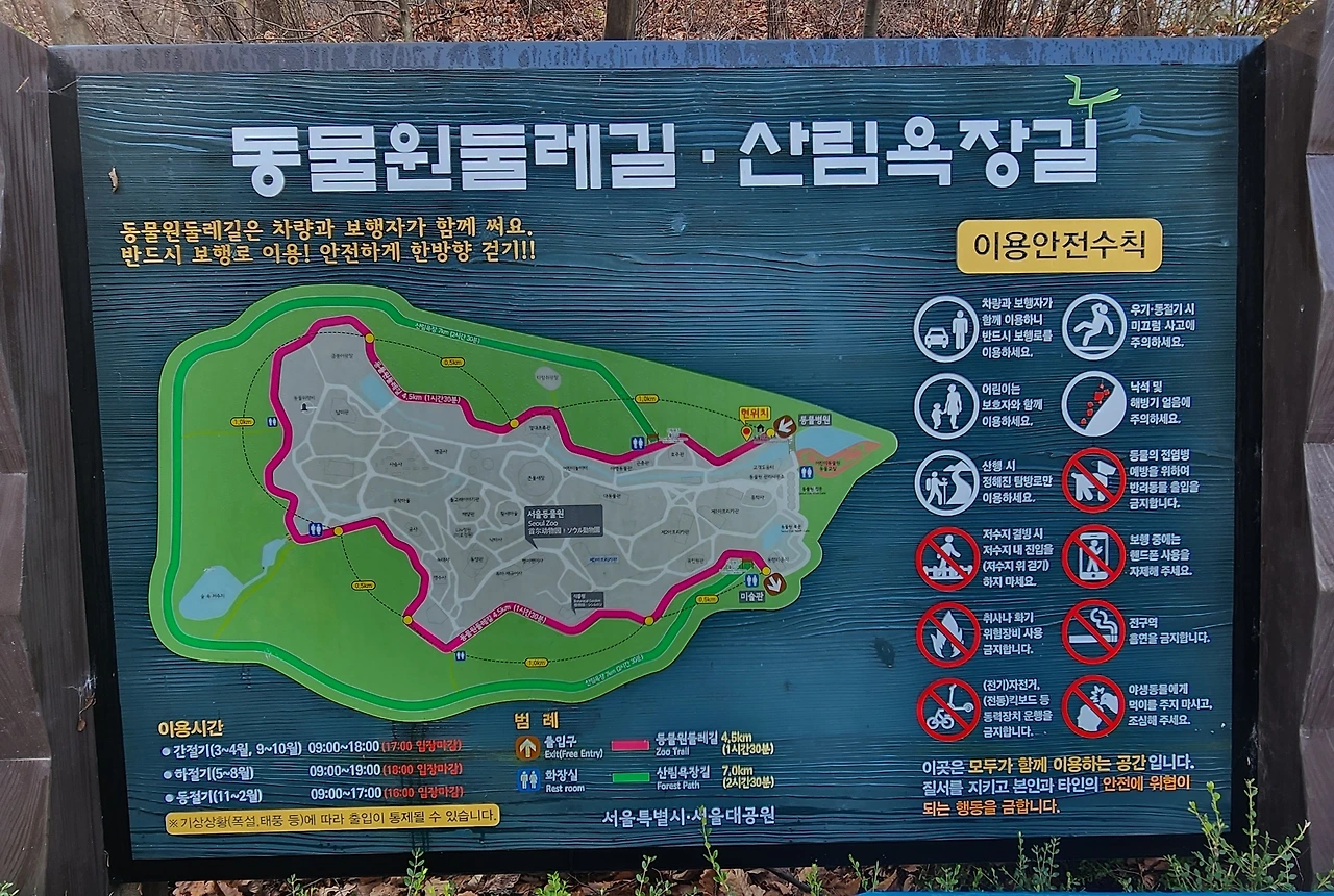 서울 근교에 지하철로 갈 수 있는 좋은 산책로가 있어서 참 좋았다. 그것도 다리 아픈 사람도 편하게 걸을 수 있는 길이라 더 좋았다. 입장료가 없는 것도 좋았다. 마음만 먹으면 언제든지 갈 수 있다. 과천 서울대공원 산책로를 계절이 바뀔 때마다 한 번씩 가면 좋겠다.