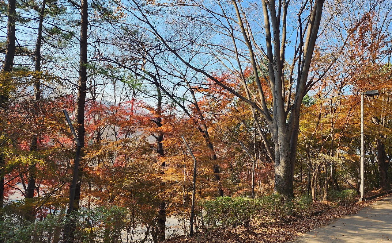 뭐가 그리 바빴는지 올 가을에는 단풍 구경도 가지 못했다. 그저 운전하며 본 길가의 가로수와 아파트 산책로에 있는 벚나무와 단풍나무의 단풍을 본 게 다다. 참, 10월 말에 손자 옷 갖다 주려고 다녀온 수원의 큰아들네 가면서 본 은행나무도 예뻤다.