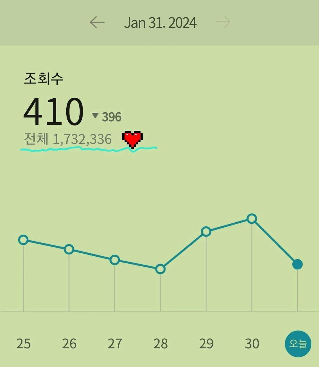 1월 31일 전체 조회수 / 입학글 조회수