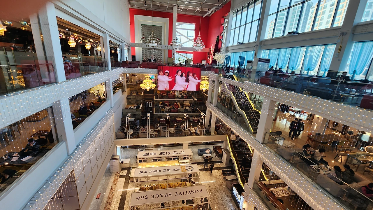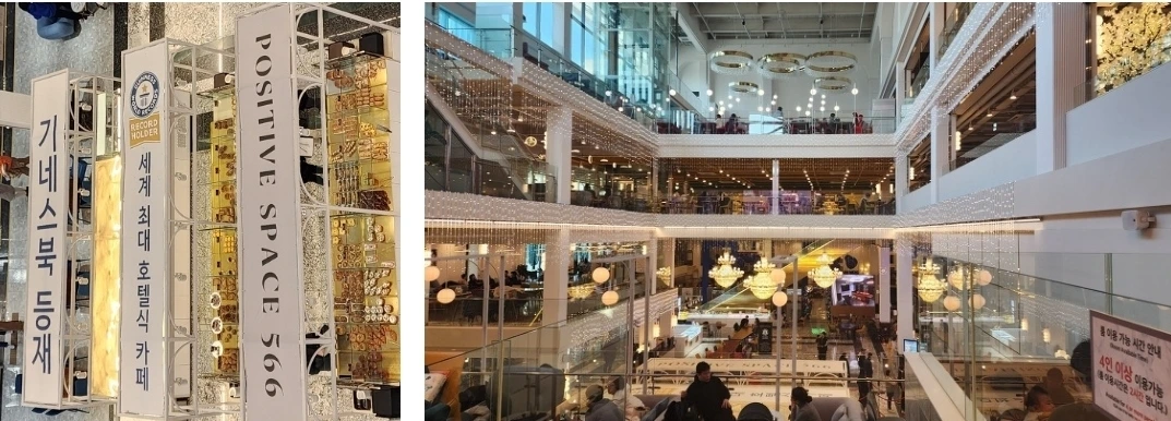이곳은 기네스북에 등재된 세계 최다 호텔식 카페 <포지티브 스페이스 566>이다. 처음 가서 조금 어리둥절했지만, 모든 주문은 1층에서 하고 차나 음식을 가지고 원하는 자리에 가서 앉으면 된다고 했다. 베이커리 카페인데 피자와 파스타, 스테이크도 있었다.그래서인지 아이들과 함께 온 부모가 많았다.