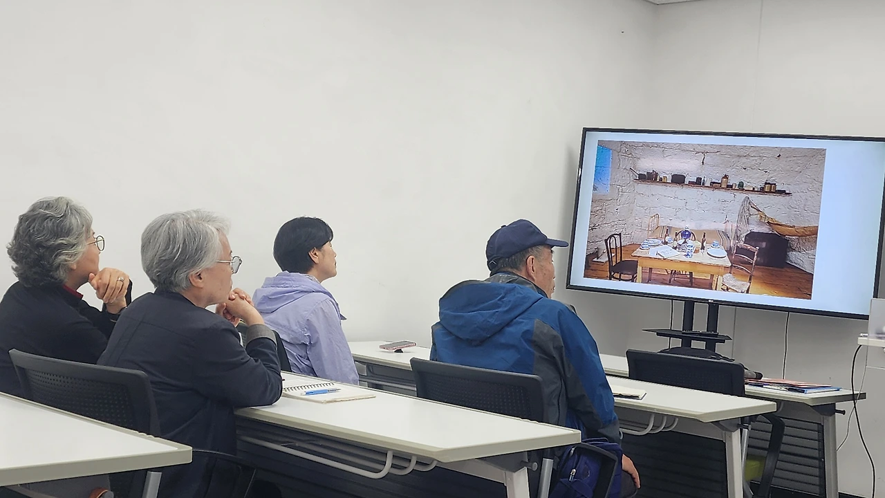 수강생이 20명이다. 70세가 가장 많고 60대와 80대는 3~4명 정도 있다. 70대 부부가 함께 수강하는 분도 두 팀이다. 부부 수강생은 같이 앉기도 하고 따로 떨어져서 앉기도 하는데 글 속에 본인이 등장할 때는 쑥스러워하신다. 아내가 남편의 이야기를 적나라하게 공개하기 때문이다. 즉 잘한 일보다는 실수한 일이나 속상했던 일, 엉뚱한 일 등을 주로 글에 쓰는데 듣는 우리는 너무 재미있어 웃느라 수업이 끊기기도 한다.나이 들어 부부가 함께 공부하며 취미생활을 함께 하는 것도 축복이라는 생각이 든다.