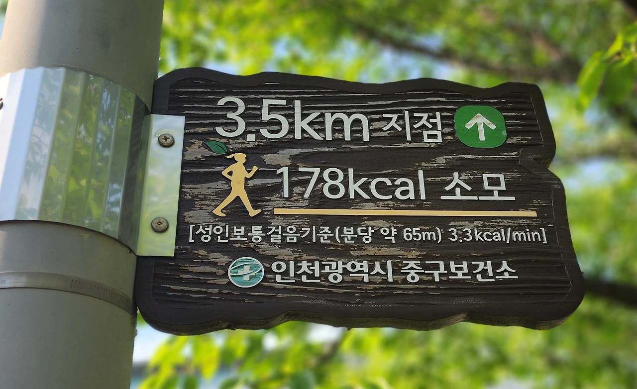 건강백년길은 입구에 0킬로미터 지점을 알려주는 안내판이 있고 500미터마다 안내판이 있어 사람마다 자신의 수준에 맞게 걸을 수 있어서 좋다. 끝까지 가면 3.5킬로미터 지점을 표시해 주는 알림판이 있고 유수지 생태 연못이 있다. 생태연못부터 거꾸로 걸어도 반대로 걸은 거리를 알 수 있게 뒷면에도 안내판이 있다. 즉 0킬로미터 뒤쪽에 3.5킬로미터가 표시되어 있다.