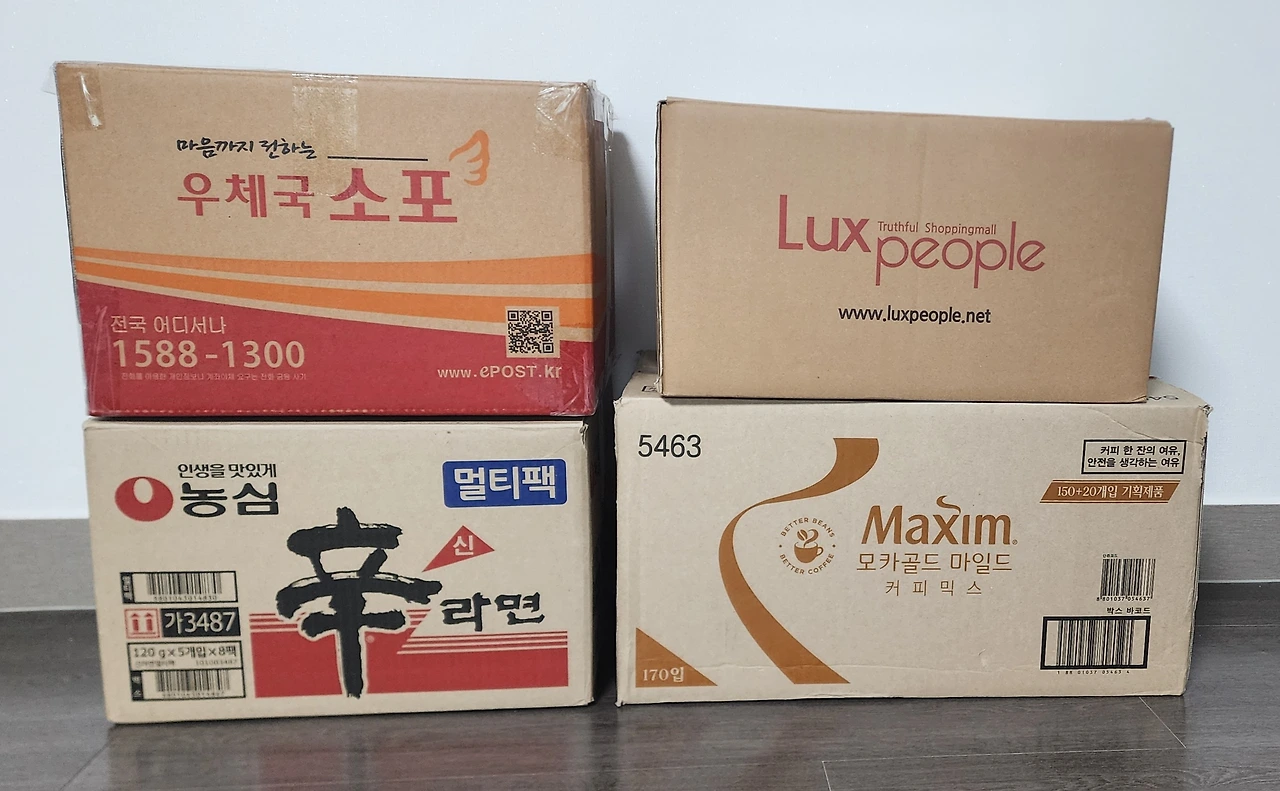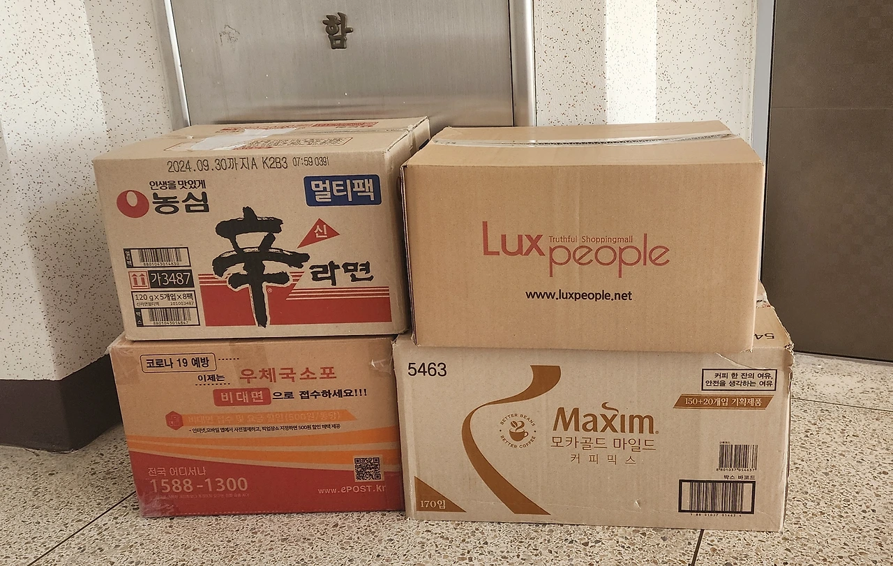 옷을 종류대로 분류하여 종이 상자에 잘 개어서 넣었다. 옷과 다른 물건을 상자에 넣으며 개수를 세었다. 기부 신청할 때 필요하기 때문이다. 기부할 물건 위에 신문지 한 장을 덮은 후에 테이프를 붙였다. 종이 상자 4개가 가득 찼다.