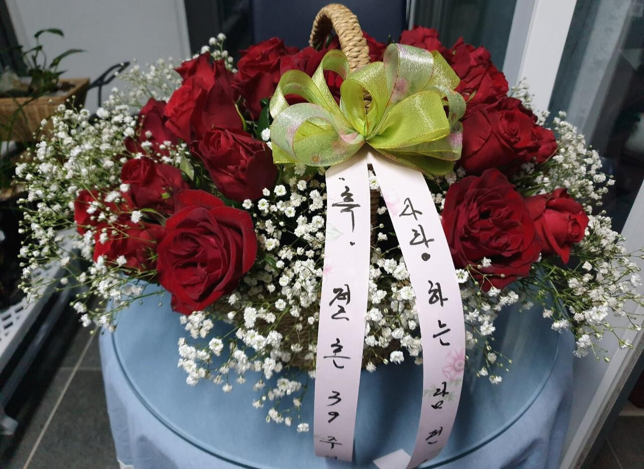 손에는 장미꽃 바구니가 들려 있었다. 그것도 장미꽃 39송이다. 결혼 39주년이라 장미꽃 39송이를 준비한 것 같다. 예전에 40살 생일 때도 장미 40송이 꽃다발을 주어 감동을 준 적이 있었지만 이번 결혼기념일엔 생각지도 않았기 때문에 깜짝 놀랐다.