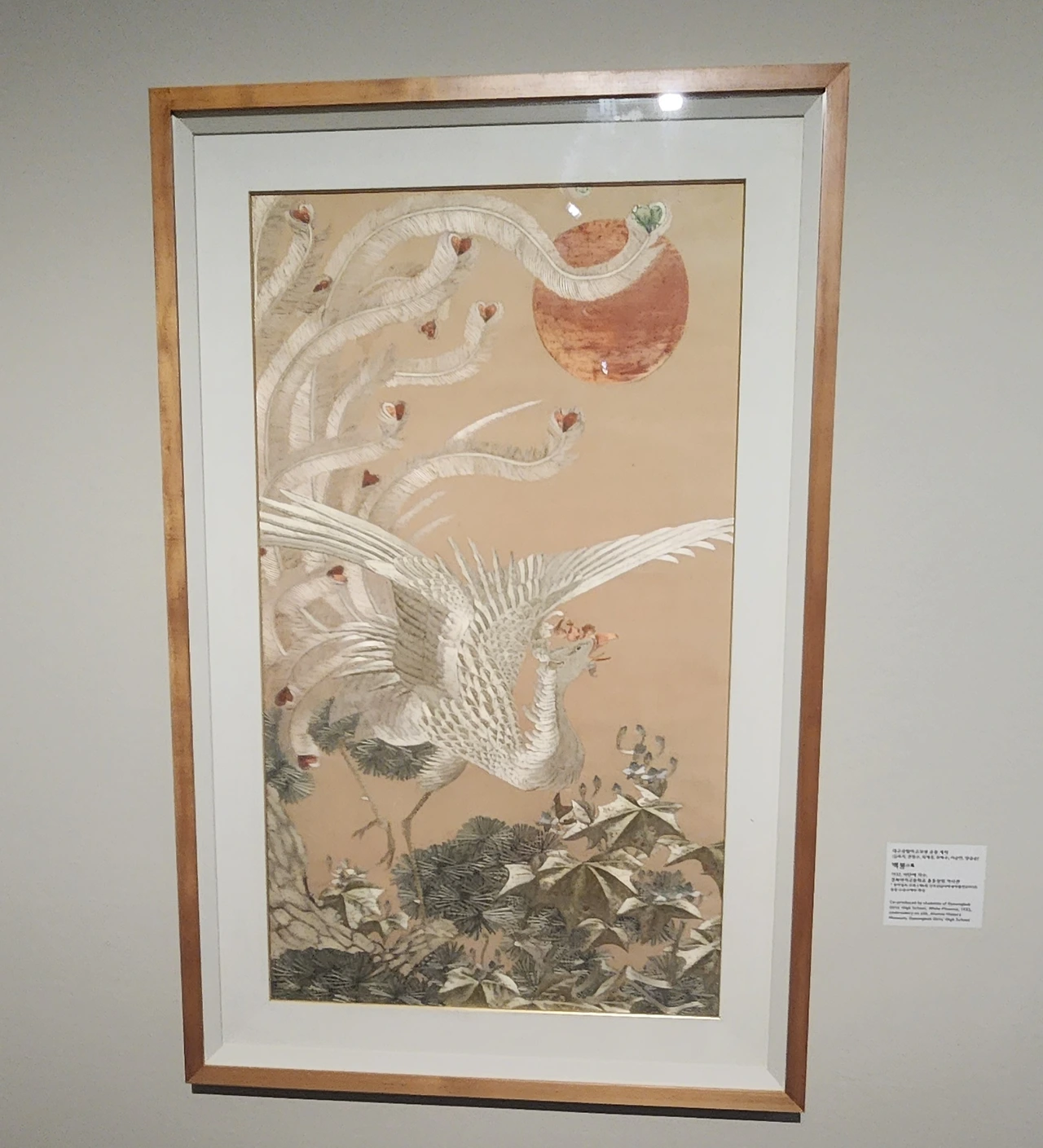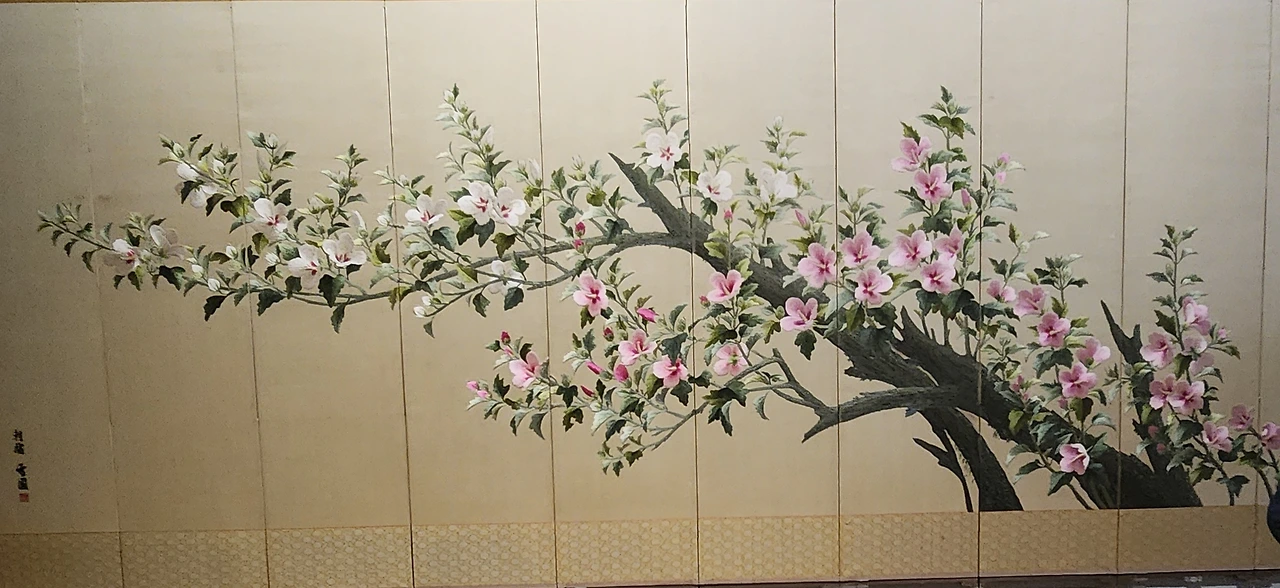 위 작품은 제목이 통일(무궁화)로 오른쪽의 붉은 무궁화는 북한을, 왼쪽의 흰색 무궁화는 남한을 상징하며 한반도 형태로 우아하게 곡선을 이루고 있다. 가운데를 가로지르는 나무 둥치는 통일의 염원을 나타낸다고 한다. 작품을 만드는데도 3년 이상 걸렸다고 한다.꽃과 잎, 나무의 명암을 그림처럼 표현해서 그 섬세함에 놀랐다.